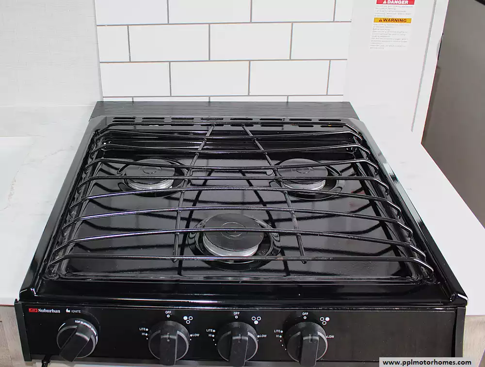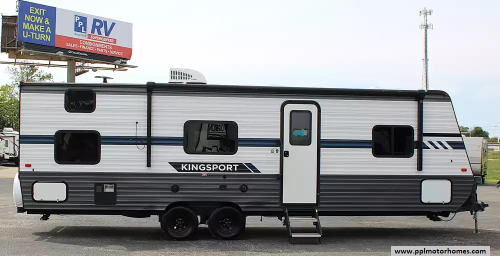 The kitchen and living area are designed with your lifestyle in mind. A fully equipped kitchen with a 3-burner stove, oven, microwave, and spacious refrigerator makes cooking on the road simple and enjoyable. The rear corner bath with a shower/tub combo ensures convenience for families, while modern touches like USB charging ports, backup camera prep, and solar prep keep you ready for today's adventures and tomorrow's upgrades. Built tough with aluminum siding and a one-piece roof, this Kingsport Ultra Lite isn't just lightweight--it's built to last. If you're looking for an RV that delivers style, space, and reliability at a great value, this is the one to see.