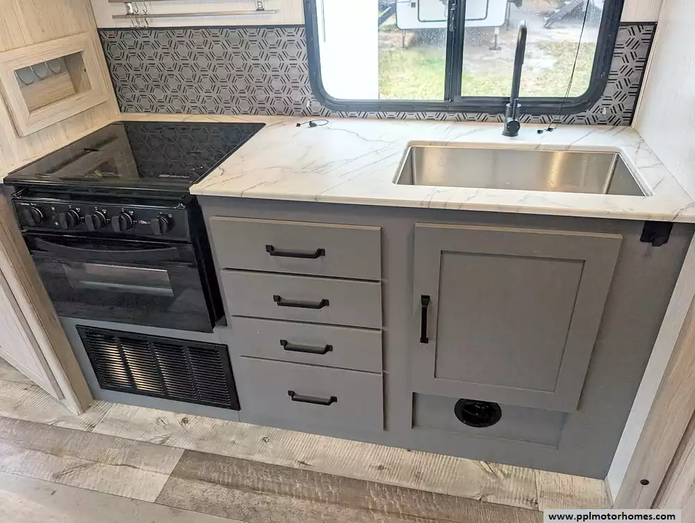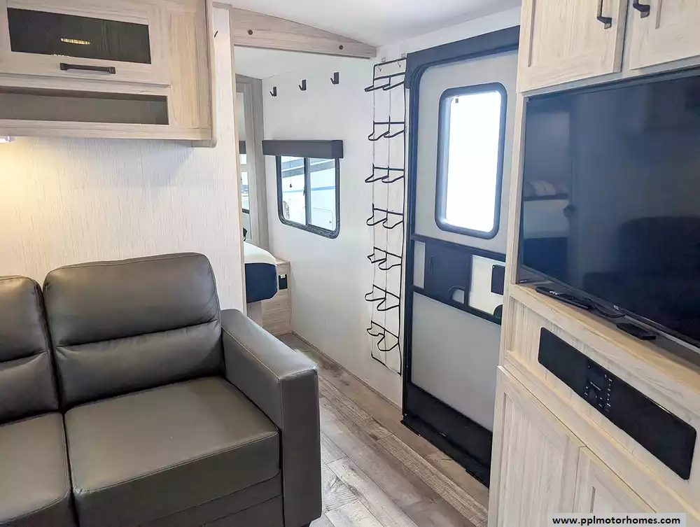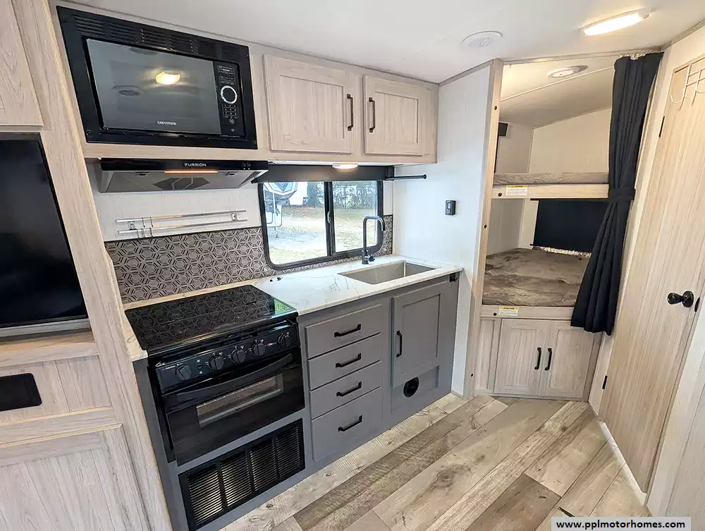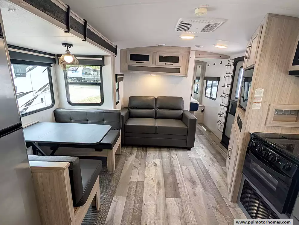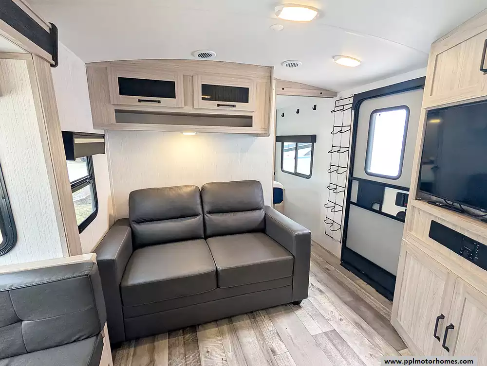 The 2023 Sundance 265BH is a masterclass in combining lightweight towability with high-end luxury, making it a top choice for those seeking both comfort and durability. Built with a sleek fiberglass body and a reliable rubber roof, this 30-foot travel trailer is engineered for the long haul. Setting up camp is effortless thanks to the electric tongue jack and automatic main awning, while the integrated outdoor kitchen, grill, and outside shower transform any campsite into a premium outdoor living space. With outside speakers to set the mood, this Sundance is designed to maximize your time in nature without sacrificing the modern conveniences of home.