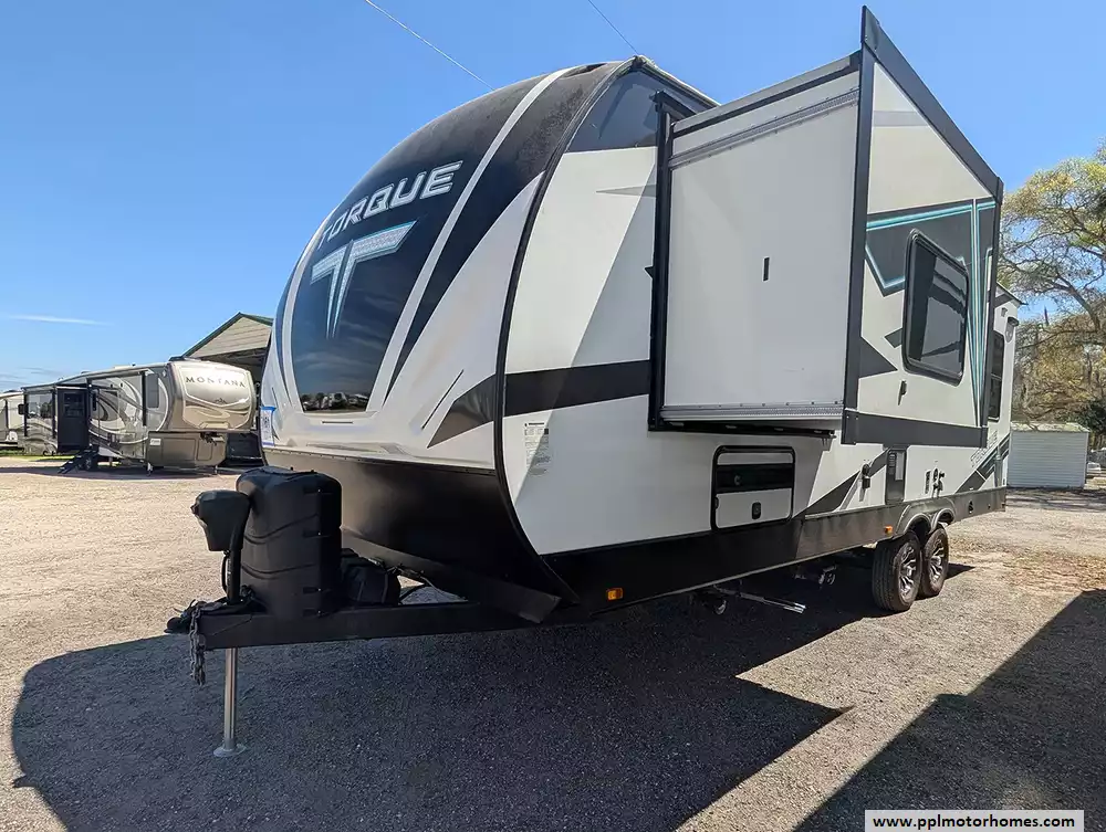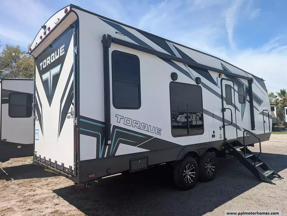 Experience the perfect blend of rugged durability and modern luxury with this 2023 Torque 256. Renowned for its versatile design and high-end finishes, this 27-foot travel trailer is built for adventurers who refuse to compromise on comfort. The fiberglass exterior and rubber roof provide a solid, aerodynamic foundation for your travels, while the integrated Onan gas generator ensures you have reliable power even when you are far off the grid. Setting up camp is effortless thanks to the electric tongue jack and automatic main awning, allowing you more time to relax and enjoy the premium outside speakers.