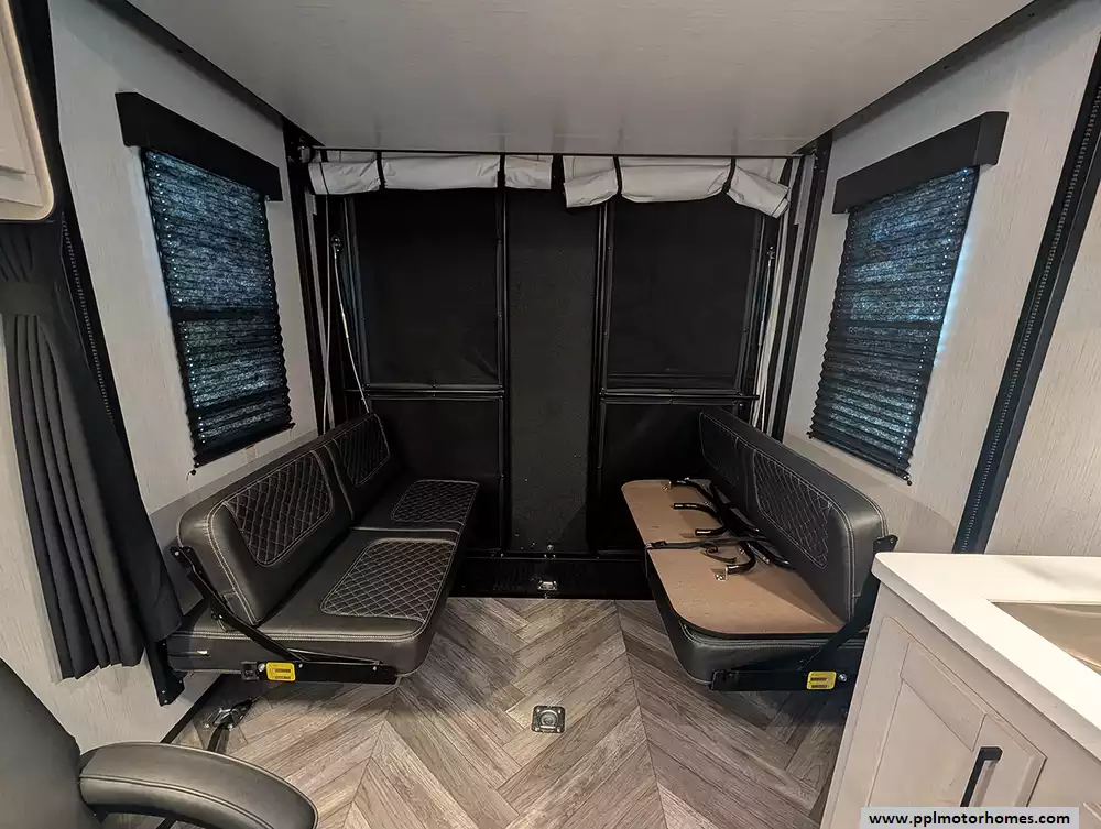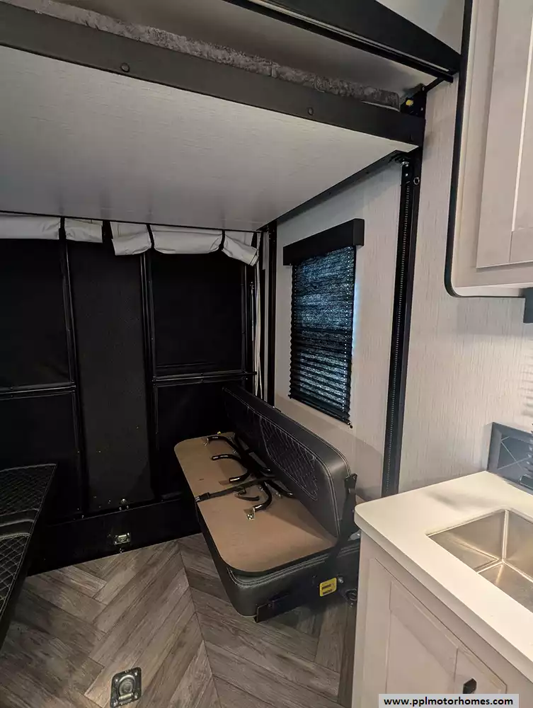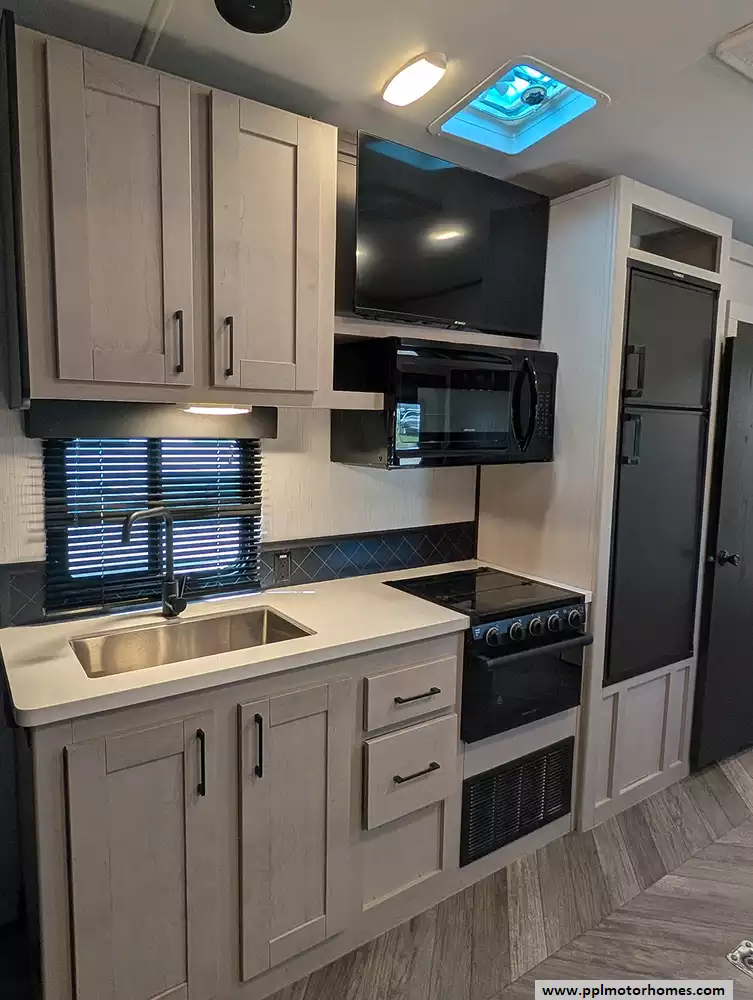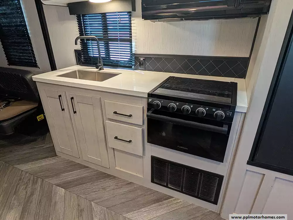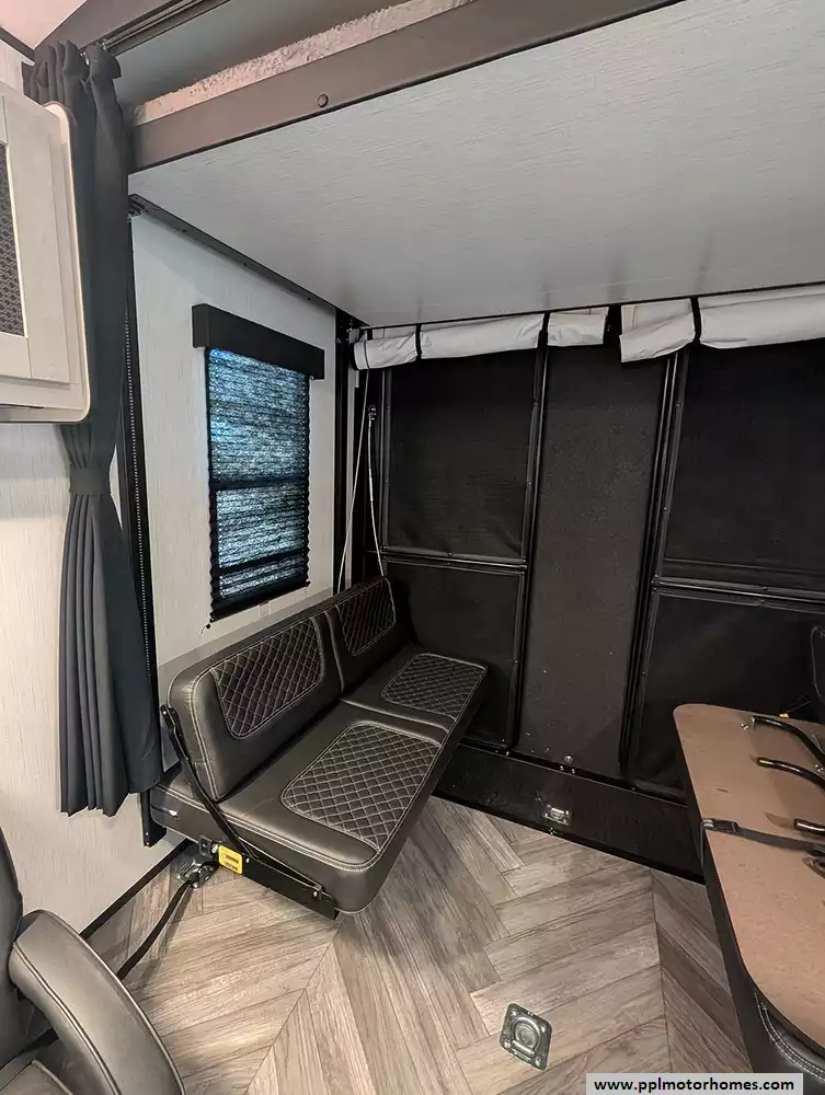 Inside, the single slide-out creates an expansive living area that feels like home, kept perfectly cool in any climate by two ducted air conditioners. The chef-ready kitchen is equipped with a three-burner range, oven, microwave, and a double door gas/12v Dometic refrigerator to keep your supplies fresh for the long haul. Whether you are unwinding in front of the included TV or preparing a meal after a day of exploration, the Torque 256 delivers a sophisticated environment that balances utility with high-end style. This model is highly regarded for its wide-body construction and superior storage, making it the ideal choice for those seeking a premium, adventure-ready escape.