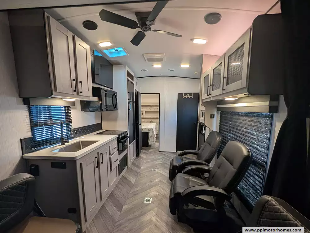 (Floor plan is NOT drawn to scale. Length of vehicle is approximate. Buyer is responsible for verifying actual length. PPL Motor Homes compiled this list of features, specifications, equipment and options as a guide. No representation or warranties, either express or implied, are made as to the accuracy of the information herein. Please verify for yourself all items listed before purchase.)