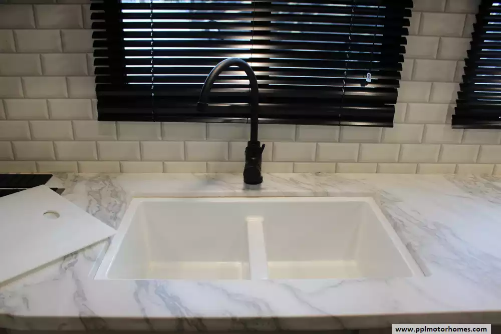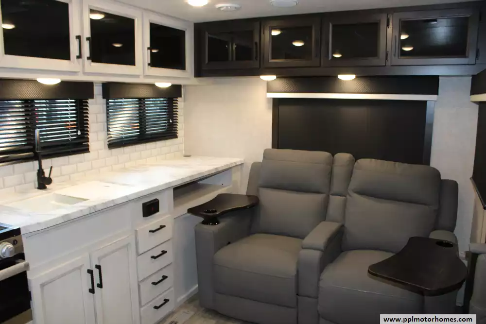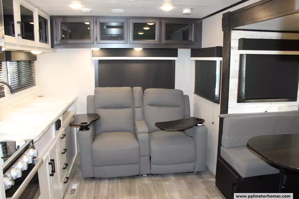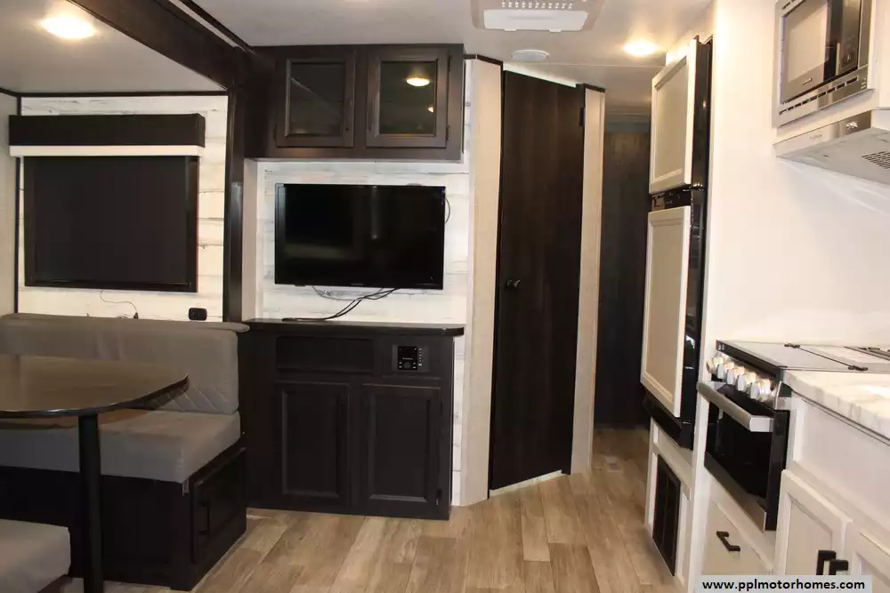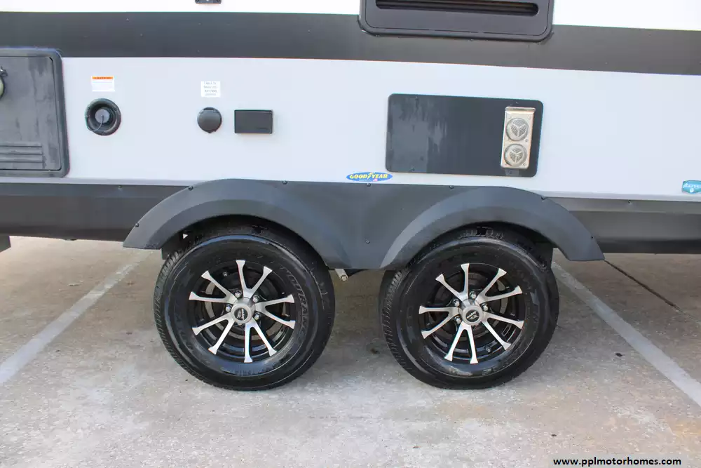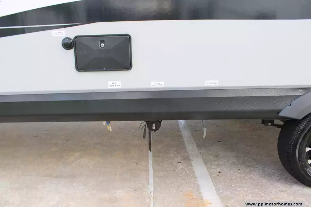 Specs: Length: 28.58 ft., Width: 8 ft., Height: 10.75 ft., Interior Height: 6.5 ft., Payload Capacity: 1,275 lbs., Total Fresh Water Tank Capacity: 55 gal., Total Gray Water Tank Capacity: 30.5 gal., Total Black Water Tank Capacity: 30.5 gal., Number of Propane Tanks: 2, Total Propane Tank Capacity: 40 lbs.