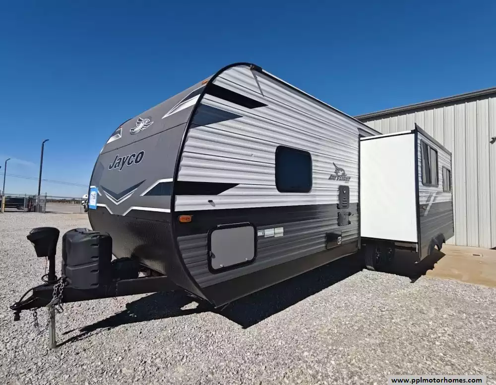 The 2023 Jayco Jay Flight 265RLS is a popular travel trailer designed for couples or small families, featuring a rear living room layout, a single slide-out, and dual entry doors. It has a dry weight of approximately 6,010 lbs and can sleep up to six people with optional additions