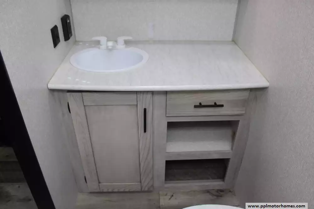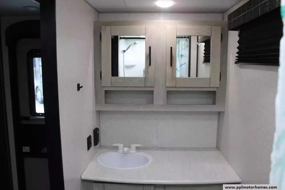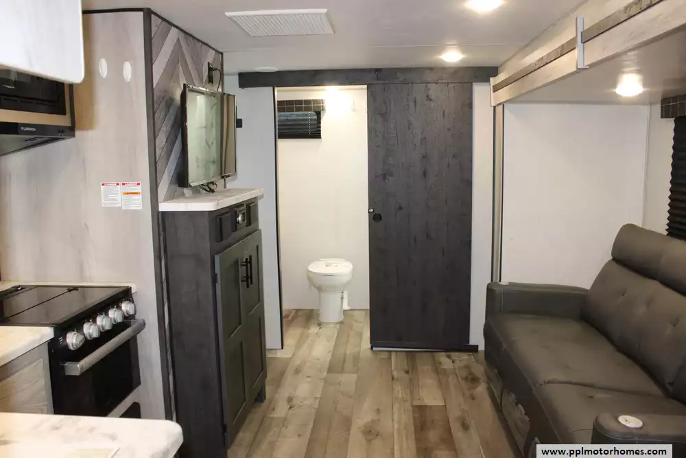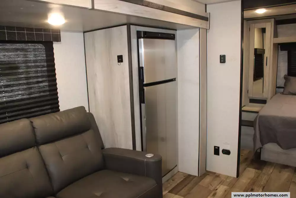 The gourmet-ready kitchen is fully equipped with a 3-burner range, oven, microwave, and a versatile double-door gas/110v Norcold refrigerator to keep your supplies fresh. Transitions from indoor to outdoor living are effortless thanks to the automatic main awning and integrated outside speakers, perfect for entertaining at the campsite. After a day of exploring, the convenient outside shower makes cleanups easy before you head inside to relax. Combining modern convenience with KZ's reputation for reliability, the Connect SE 221RBSE is a sophisticated choice for travelers who refuse to compromise on quality or comfort.