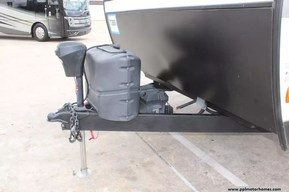 Specs: Length: 27 ft., Width: 8 ft., Height: 10.10 ft., Interior Height: 6.5 ft., Payload Capacity: 1,600 lbs., Total Fresh Water Tank Capacity: 45 gal., Total Gray Water Tank Capacity: 64 gal., Total Black Water Tank Capacity: 32 gal., Total Propane Tank Capacity: 40 lbs.