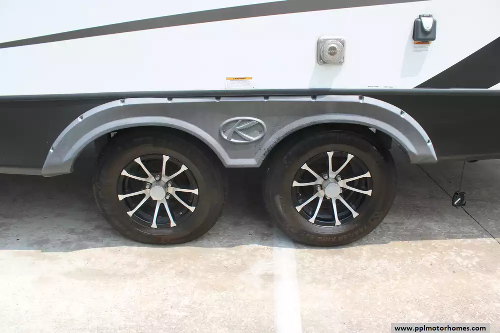 Specs: Length: 25.10 ft., Width: 8ft., Height: 10.8 ft., Payload Capacity: 1,636 lbs., Total Fresh Water Tank Capacity: 37 gal., Total Grey Tank Capacity: 30 gal., Total Black Water Tank Capacity: 30 gal., Total Propane Tanks: 2, Total Propane Tank Capacity: 40 lbs.