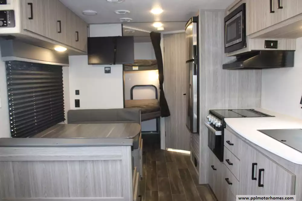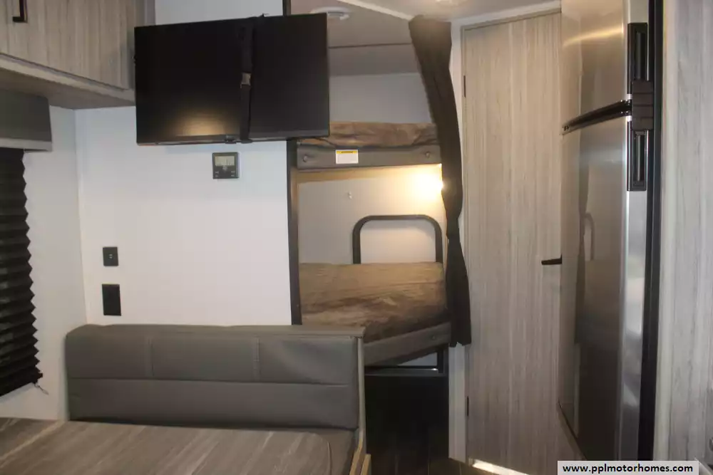 Inside, you will find a thoughtfully designed living space equipped with all the comforts of home. The kitchen features a three-burner range, oven, microwave, and a versatile double-door gas/110v Norcold refrigerator to keep your supplies fresh throughout your journey. After a day of adventure, you can relax in front of the included TV or retreat to the comfortable bunk setup that has made the 219BH a favorite for traveling families. Combining Keystone's reputation for quality construction with modern amenities, this Ultra Lite travel trailer is ready to help you create lasting memories on the open road.