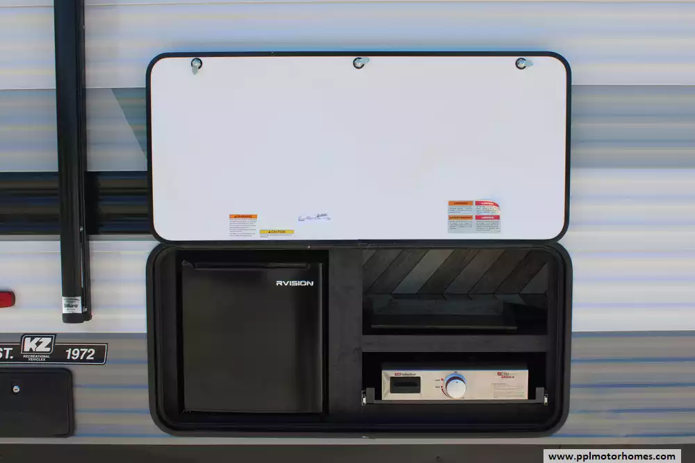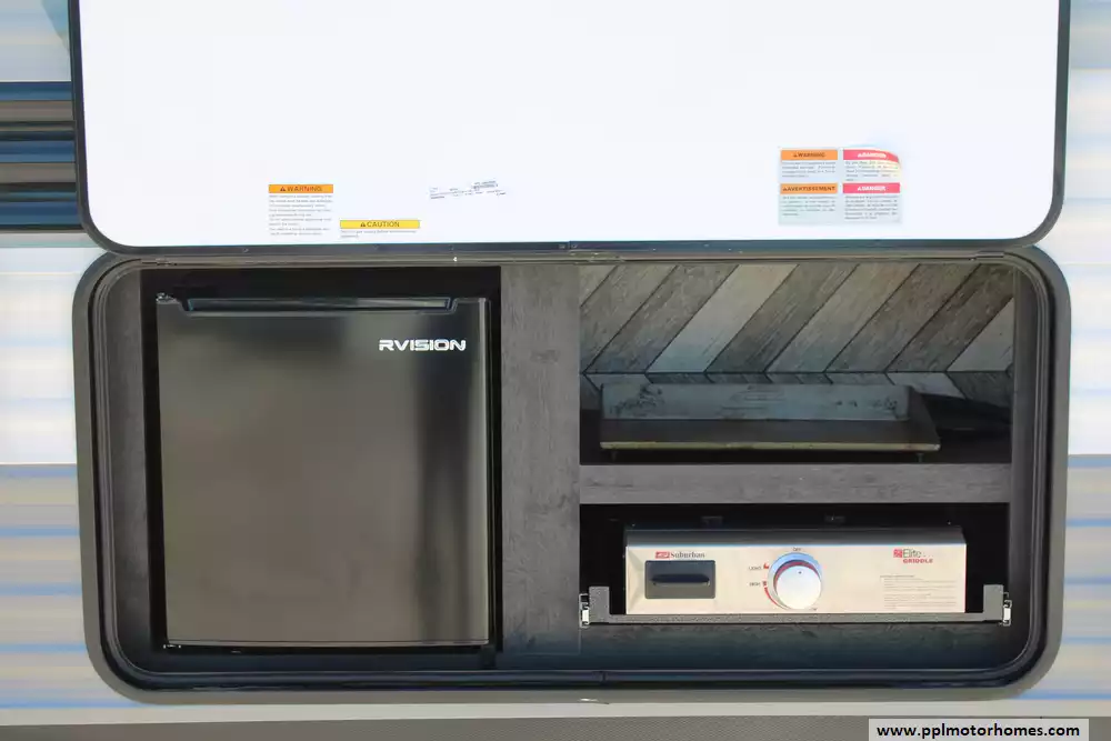 The kitchen is well-equipped for indoor and outdoor use. Inside, you'll find a 10 cu. ft. 12V refrigerator, a three-burner range with oven, and a microwave. Outside, the trailer features an exterior kitchen complete with a mini fridge and griddle. Perfect for enjoying meals under the open sky. With generous tank capacities, ample storage, and a manageable dry weight of 5,710 lbs, the 271BHKSE is ready for adventure. To safely tow this trailer (GVWR 7,000 lbs), you'll need a properly equipped full-size SUV or half-ton pickup truck with at least 7,000 lbs of towing capacity.