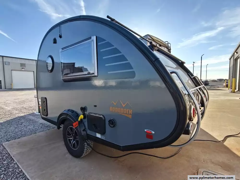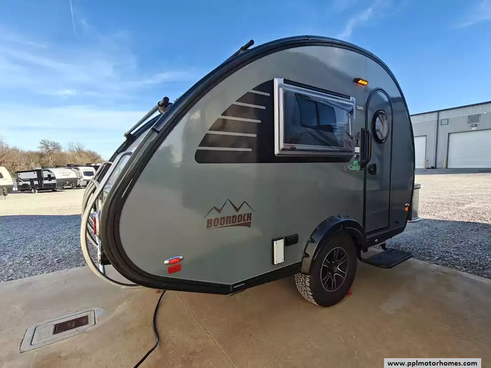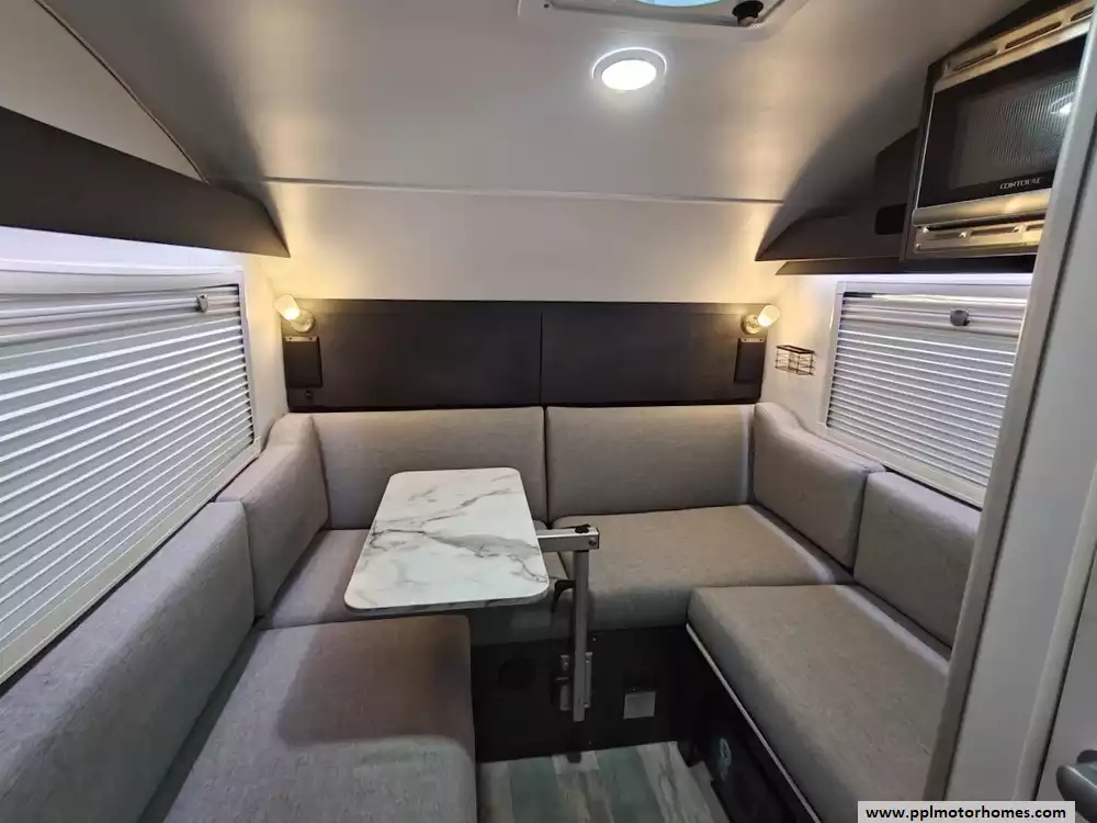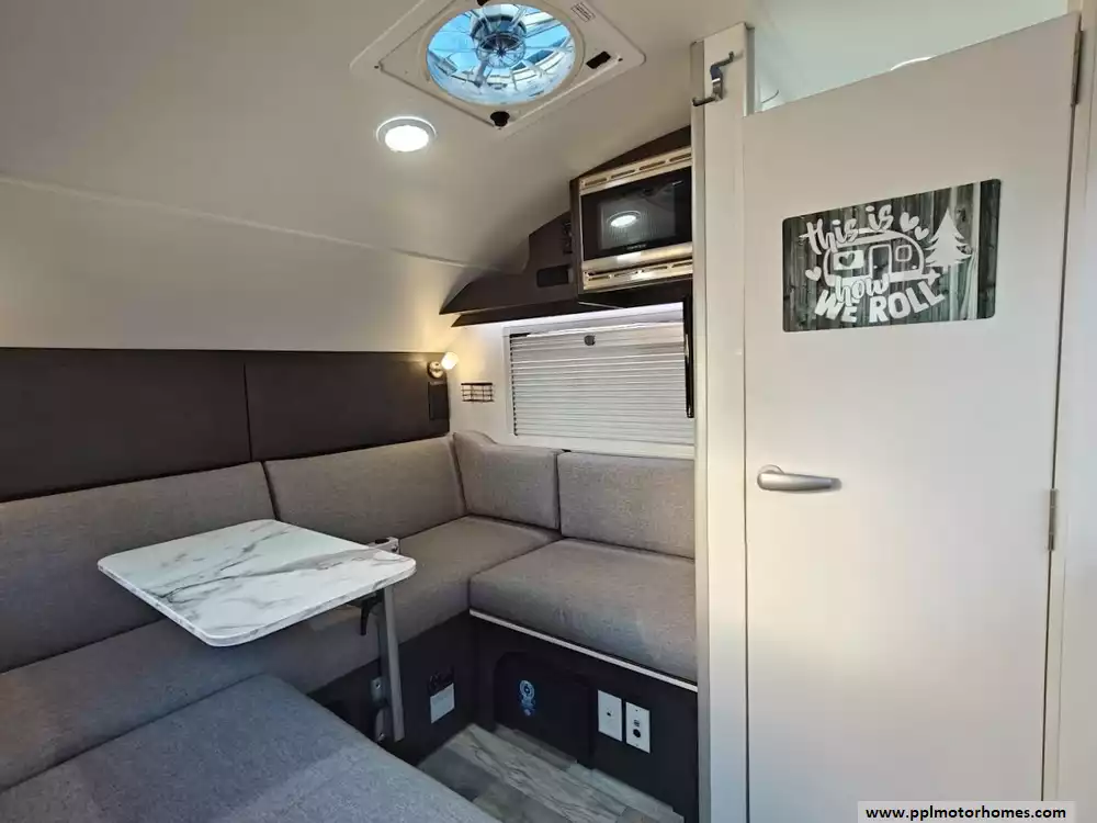 This 2023 NuCamp T@b 320s Boondock features a U-shaped dinette that provides ample seating for meals or lounging.The interior features high-quality, deluxe Ohio-Amish cabinetry with soft-close hardware. The table is a highly adjustable Lagun table that can be swiveled out of the way or moved to an exterior mount for outdoor dining. It is equipped with a Bluetooth Media Center paired with a 19-inch TV for entertainment inside the cabin. The galley kitchen features a 2-burner glass-top stove, microwave, sink and 12v refrigerator. It also features a wet bath with a cassette toilet. It is equipped with the Alde central heat/hot water system and central air conditioning. Other features include solar panels, off road tires, electric tongue jack and 3 diamond plate storage tubs.