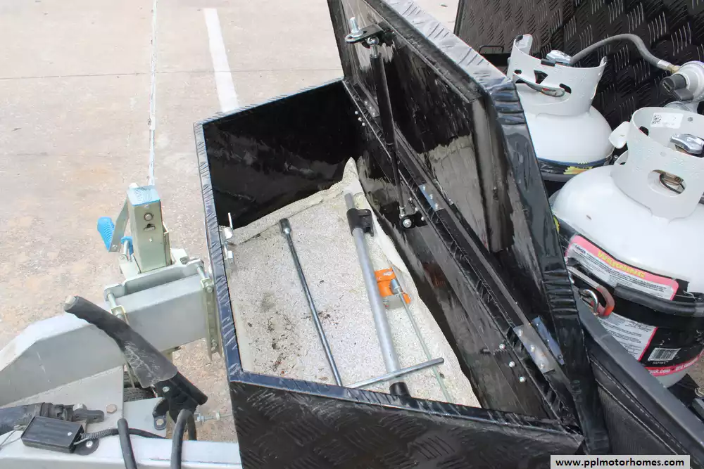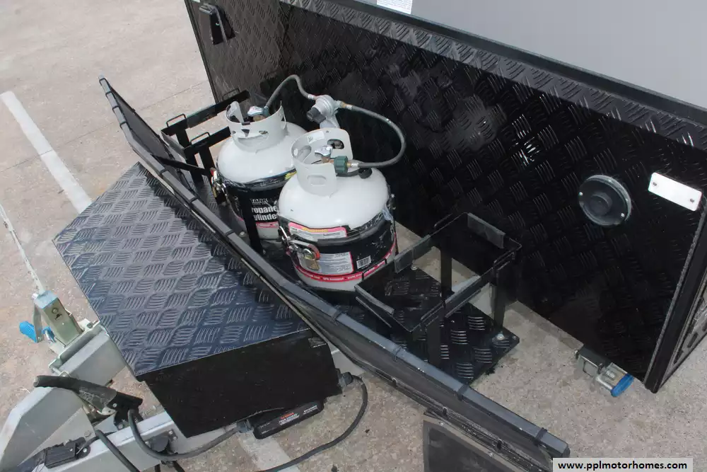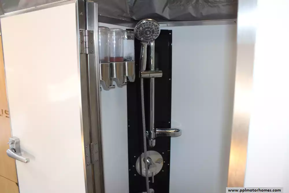 Specs: Length: 23 ft., Width: 7ft., Height: 8.92 ft., Interior Height: 6.42 ft., Total Fresh Water Tank Capacity: 64 gal., Total Gray Water Tank Capacity: 17 gal., Total Black Water Tank Capacity: 10 gal., Number of Propane Tanks: 2, Total Propane Tank Capacity: 170 lbs.