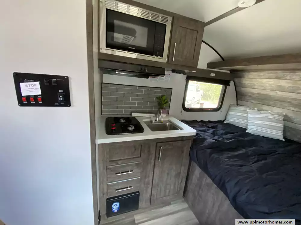 This 2023 Xplorer 135 has an Electric Tongue Jack, 1 Non-Ducted Air Conditioner, Double Door 12v Furrion Refrigerator, Automatic Main Awning, Outside Speakers, Outside Shower, Microwave, 3 Burner Range