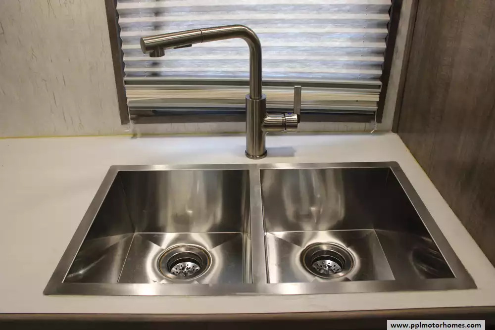 Specs: Width: 6.9 ft., Height: 6.8ft., Total Gray Water Tank Capacity: 31 gal, Total Black Water Tank Capacity: 31 gal.