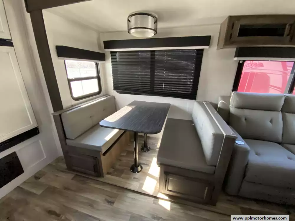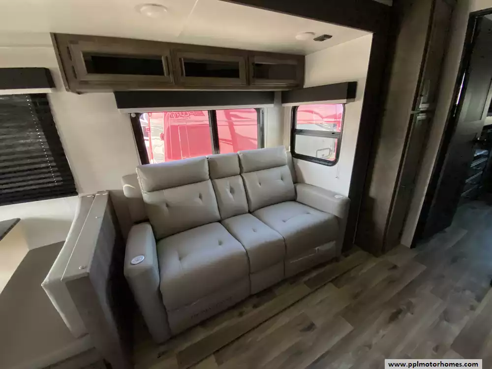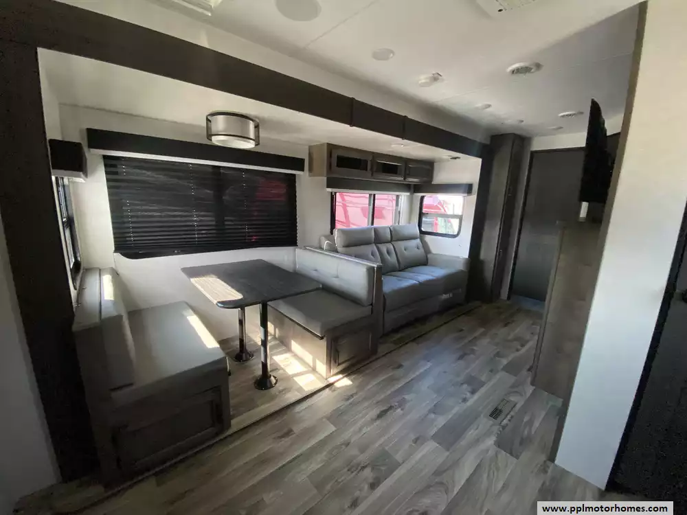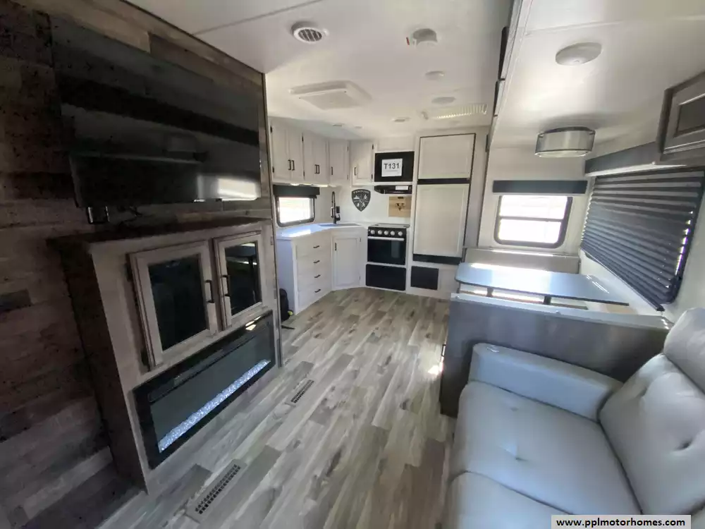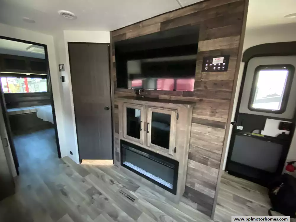 This 2023 Sporttek Touring 272VRK has an Electric Tongue Jack, 2 Slide-outs, 2 Ducted Air Conditioners, Double Door 12v Furrion Refrigerator, Automatic Main Awning, Solar Panel, Outside Speakers, TV, DVD Player, Outside Shower, 2 Fireplace, Microwave, 3 Burner Range, Oven
