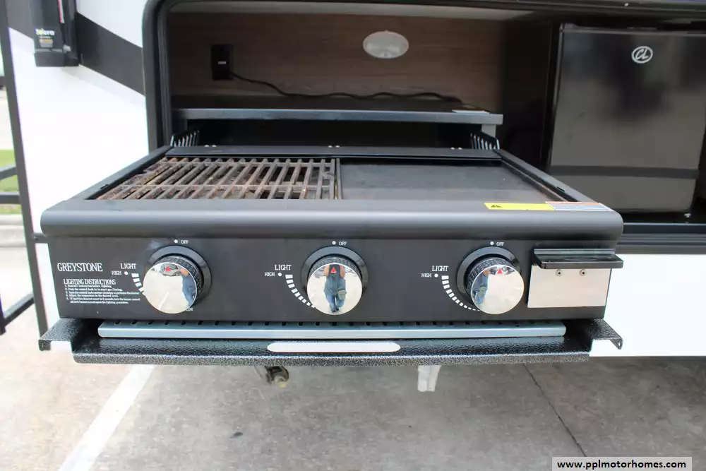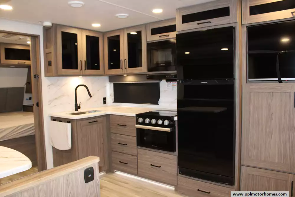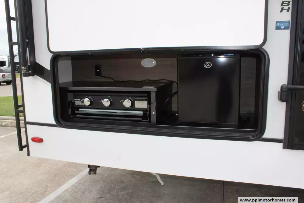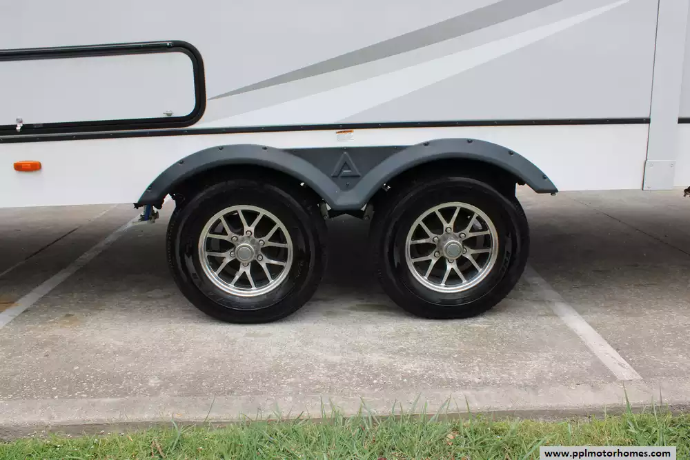 Specs: Length: 31.92 ft., Height: 11.17 ft., Payload Capacity: 2,068 lbs., Total Fresh Water Tank Capacity: 45 gal., Total Gray Water Tank Capacity: 90 gal., Total Black Water Tank Capacity: 45 gal., Number of Propane Tanks: 2.