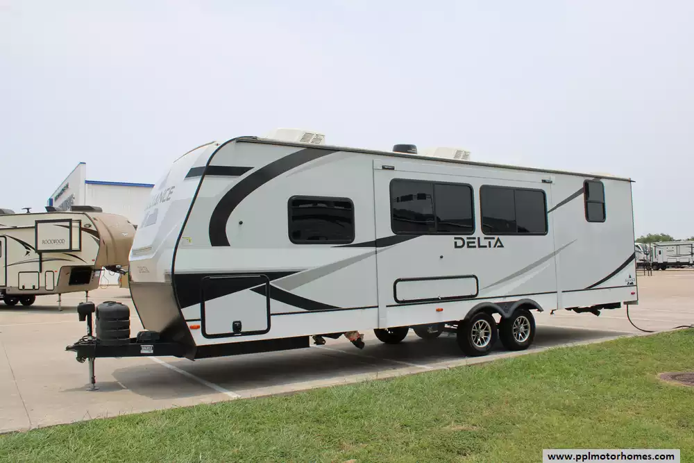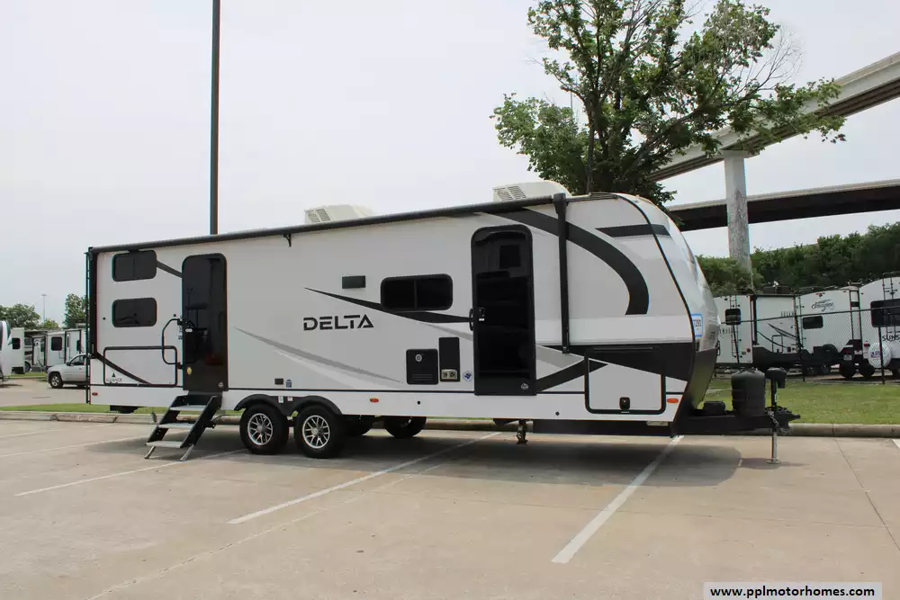 This 2024 Delta 281BH is a thoughtfully designed travel trailer that caters to families and groups seeking comfort, functionality, and modern amenities. Amenities Include...Electric Tongue Jack, 1 Slide-out, 1 Non-Ducted And 1 Ducted Air Conditioner, Double Door Residential Furrion Refrigerator, Automatic Main Awning, TV, Outdoor Kitchen, Outside Shower, Microwave, 3 Burner Range, and Oven. With its spacious layout and quality construction, it offers a compelling option for those looking to enhance their camping experiences.