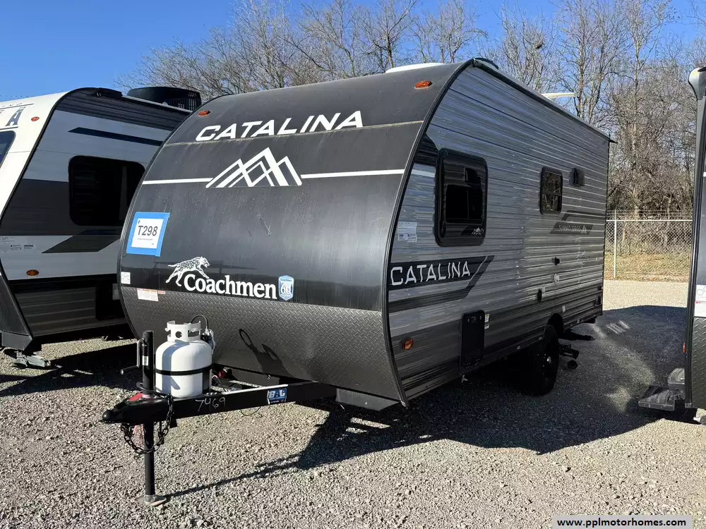 This 2024 Catalina Summit 154RBX has a 1 Non-Ducted Air Conditioner, Single Door 12v Refrigerator, Main/Door Awnings, Outside Speakers, TV, Microwave, 2 Burner Range