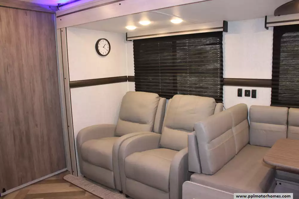 (Floor plan is NOT drawn to scale. Length of vehicle is approximate. Buyer is responsible for verifying actual length. PPL Motor Homes compiled this list of features, specifications, equipment and options as a guide. No representation or warranties, either express or implied, are made as to the accuracy of the information herein. Please verify for yourself all items listed before purchase.)