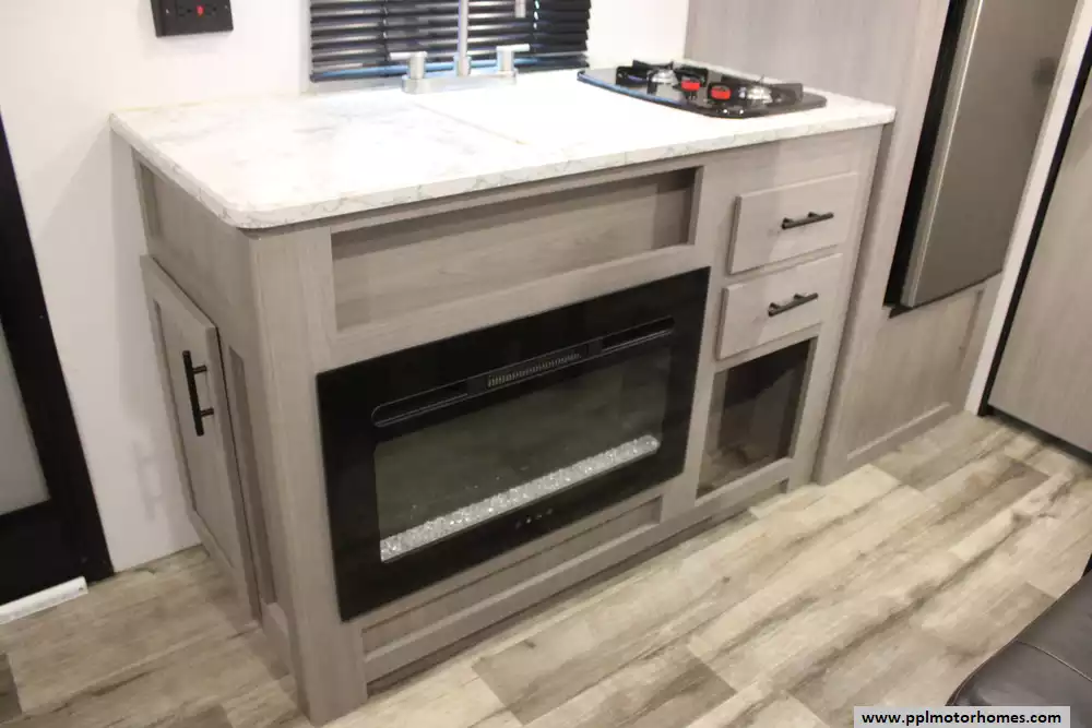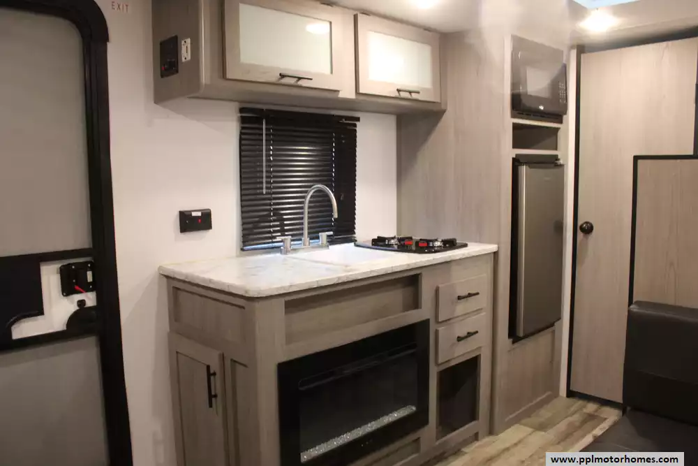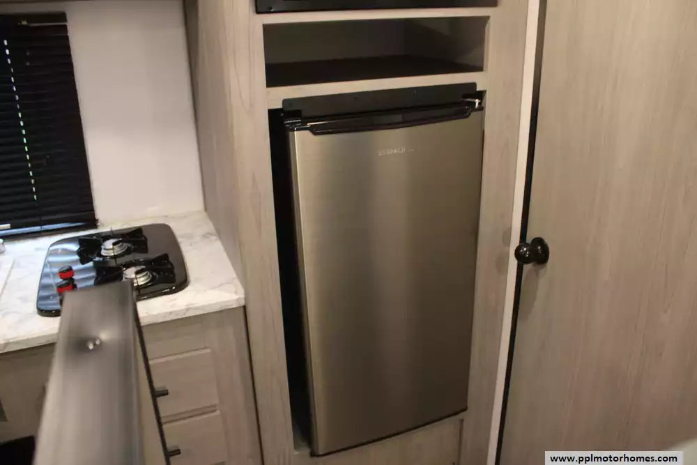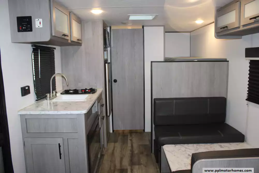 Specs: Length: 20.2 ft., Height: 9.9 ft., Total Fresh Water Tank Capacity: 21 gal., Total Gray Water Tank Capacity: 34 gal., Total Black Water Capacity: 34 gal., Total Propane Tank Capacity: 20 lbs.