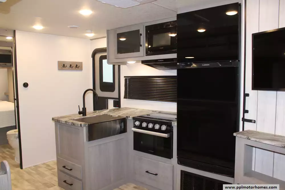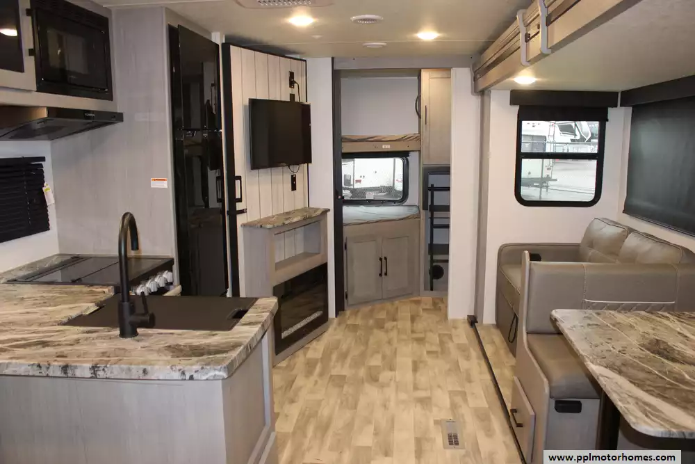 Specs: Length: 33.11 ft., Height: 11.2 ft., Payload Capacity: 1,530 lbs., Total Fresh Water Tank Capacity: 44 gal., Total Gray Water Tank Capacity: 78 gal., Total Black Water Tank Capacity: 28 gal., Total Propane Tanks: 2, Total Propane Tank Capacity: 40 lbs.