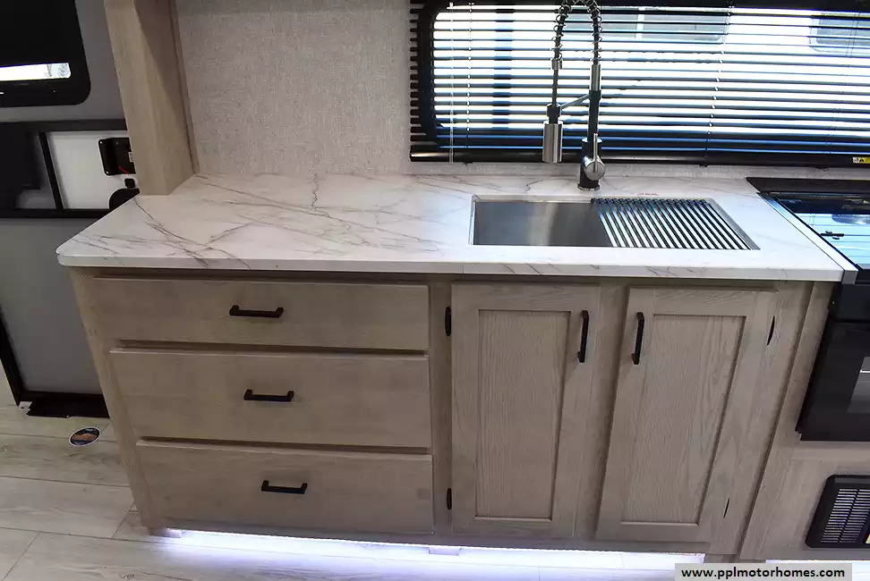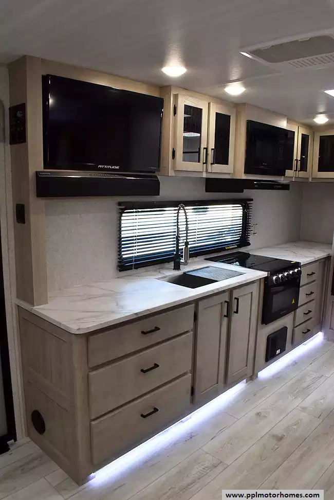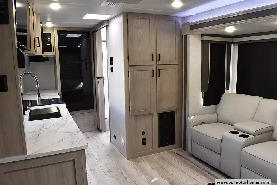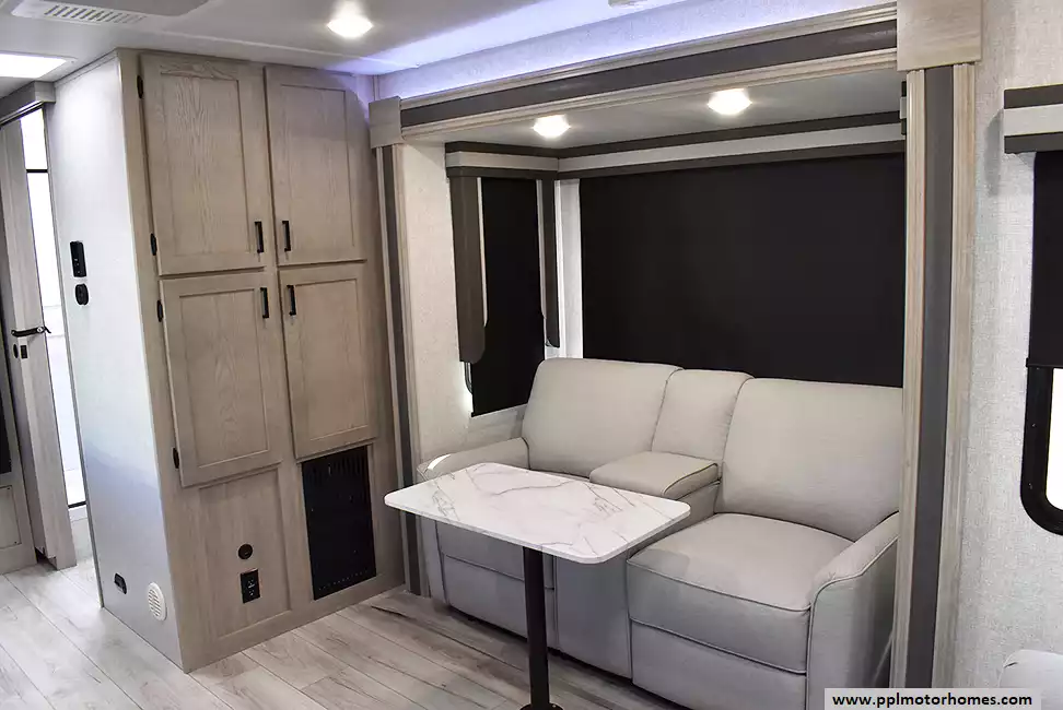 (Floor plan is NOT drawn to scale. Length of vehicle is approximate. Buyer is responsible for verifying actual length. PPL Motor Homes compiled this list of features, specifications, equipment and options as a guide. No representation or warranties, either express or implied, are made as to the accuracy of the information herein. Please verify for yourself all items listed before purchase.)