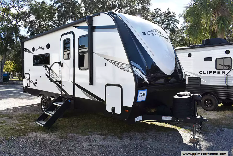 Like new and kept under cover, this lightweight Alta offers premium comfort in a compact package. Features include a tankless water heater, 200 amp solar setup for off-grid adventures, and a clever Murphy bed design that maximizes living space. Enjoy the modern interior, roomy bath, and full kitchen all in excellent condition. Easy to tow, stylish, and ready for your next trip!