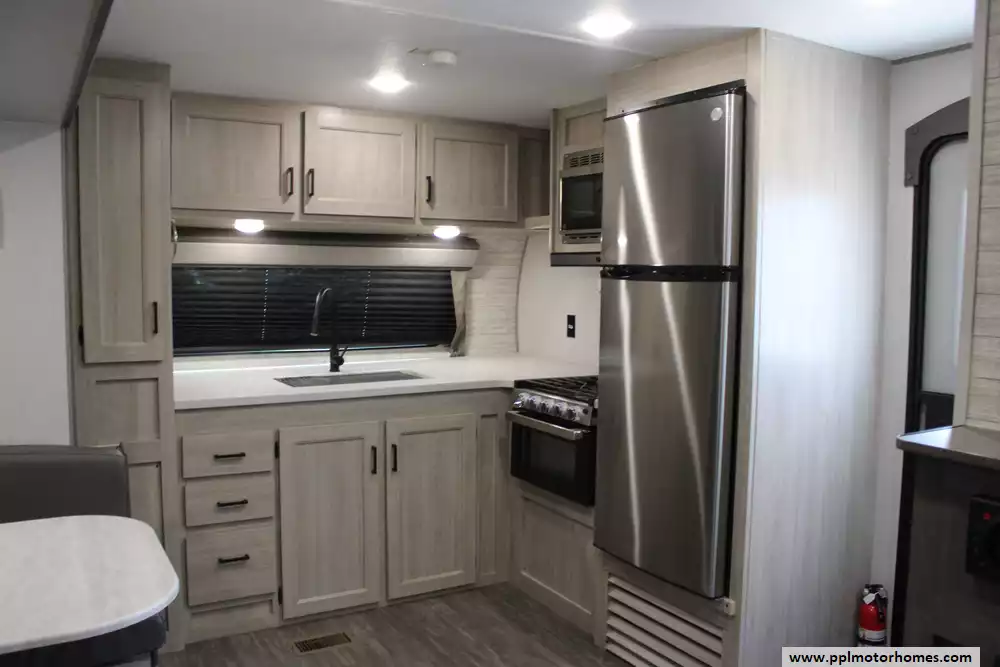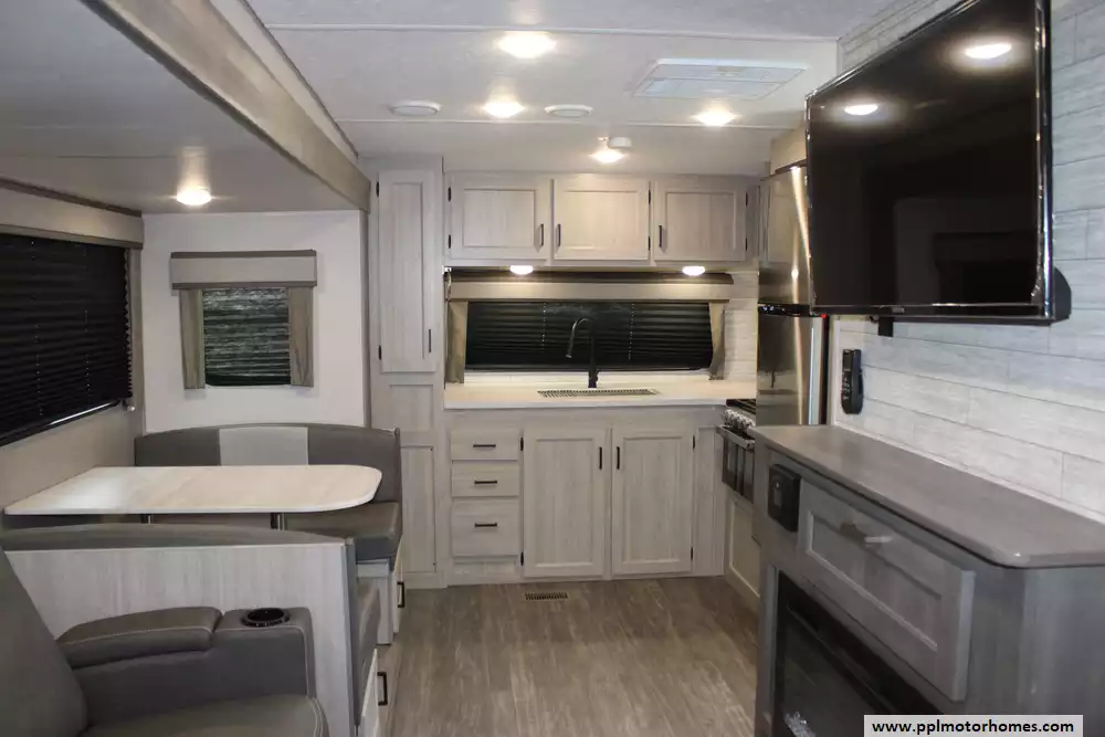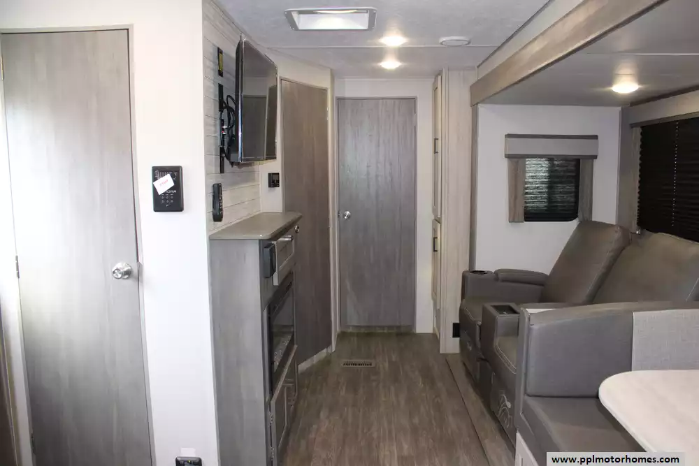 Specs: Length: 29.4 ft., Width: 8 ft., Height: 11.1 ft., Interior Height: 6.9 ft., Total Fresh Water Tank Capacity: 44 gal., Total Gray Water Tank Capacity: 60 gal., Total Black Water Tank Capacity: 30 gal., Number of Propane Tanks: 1, Total Propane Tank Capacity: 20 lbs.