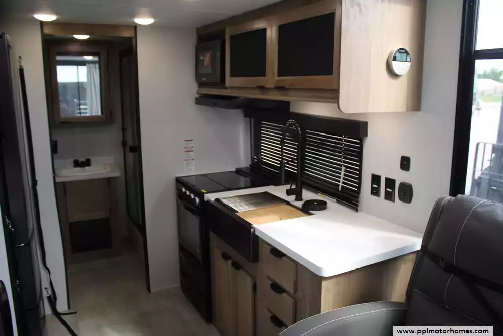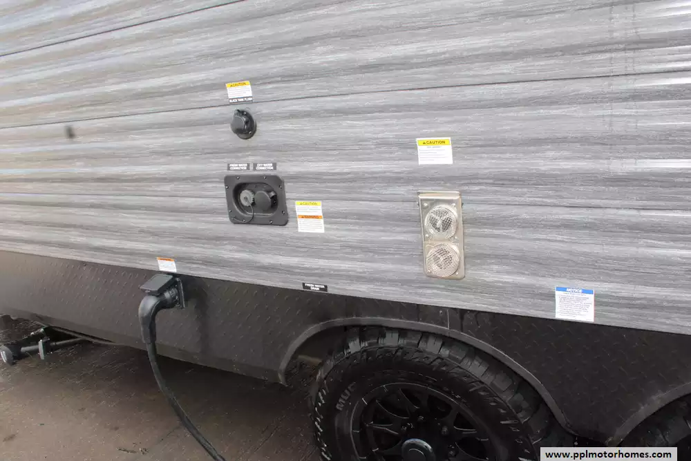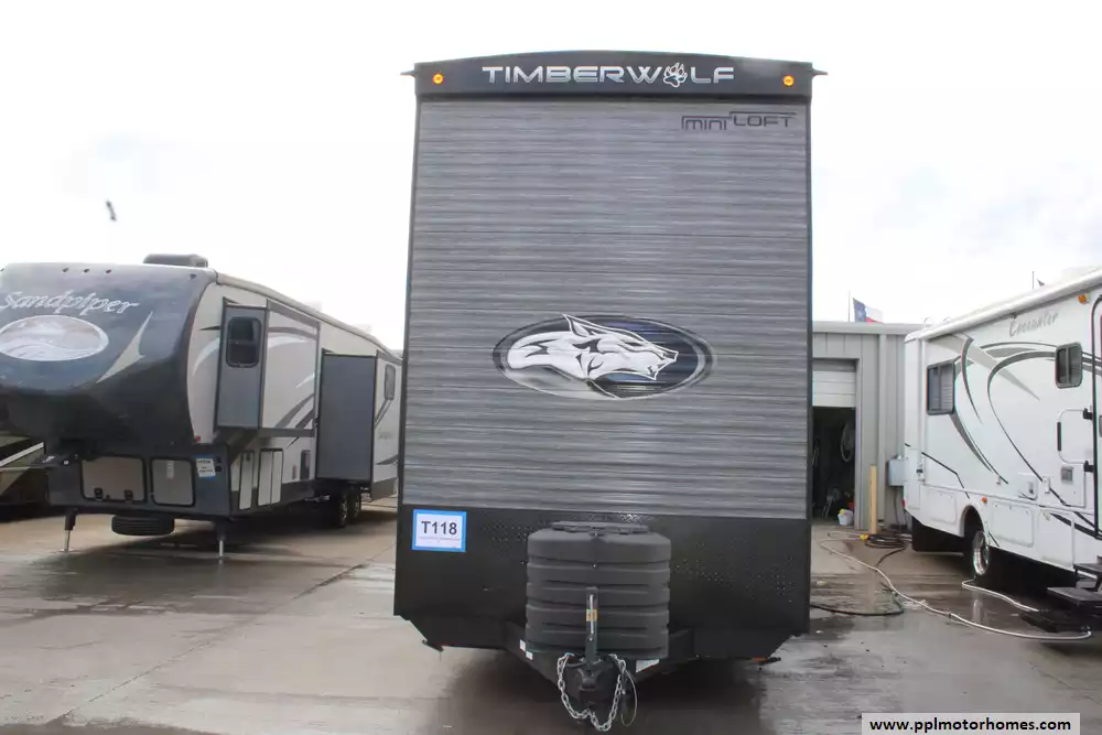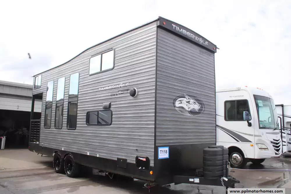 The 2024 Forest River Cherokee Timberwolf 16ML is a destination-style travel trailer designed to deliver a "tiny home" feel in a compact, park-ready package, measuring about 27 feet 9 inches in length and sleeping up to four people. Built with a loft-style floorplan, it features a main living area with large windows, a high ceiling, and a front sliding glass door that opens to an exterior patio deck, along with an upper loft space for additional sleeping or storage. Inside, the unit offers a residential-style kitchen with full appliances, a comfortable seating area, and a full bathroom, plus modern touches like entertainment wiring, washer/dryer prep, and ample cabinetry. With a dry weight around 7,100 pounds, a GVWR of approximately 11,240 pounds, and 40-gallon fresh, gray, and black water tanks, the 16ML is best suited for extended stays or seasonal placement rather than frequent towing, combining home-like comfort with RV versatility. This Timberwolf also has a brand-new roof!