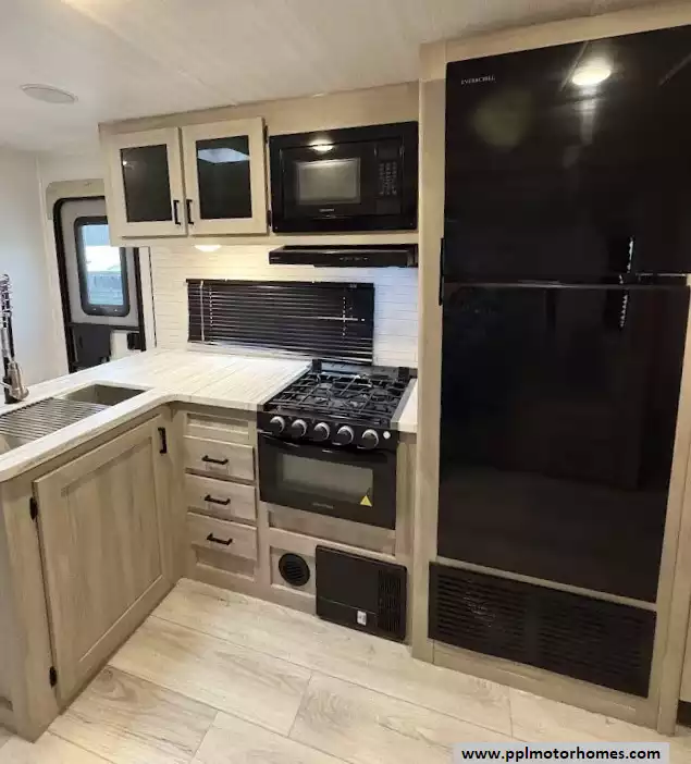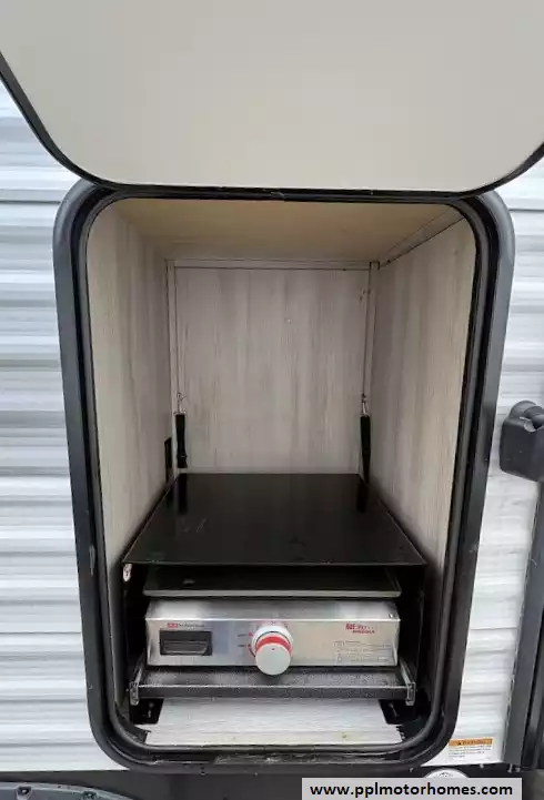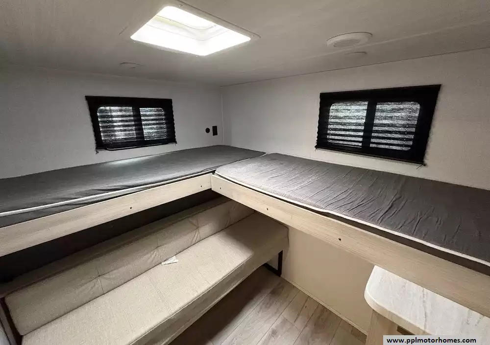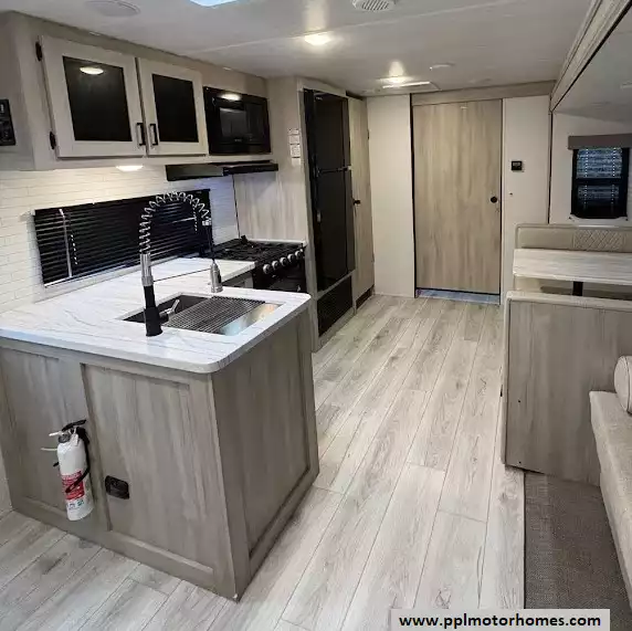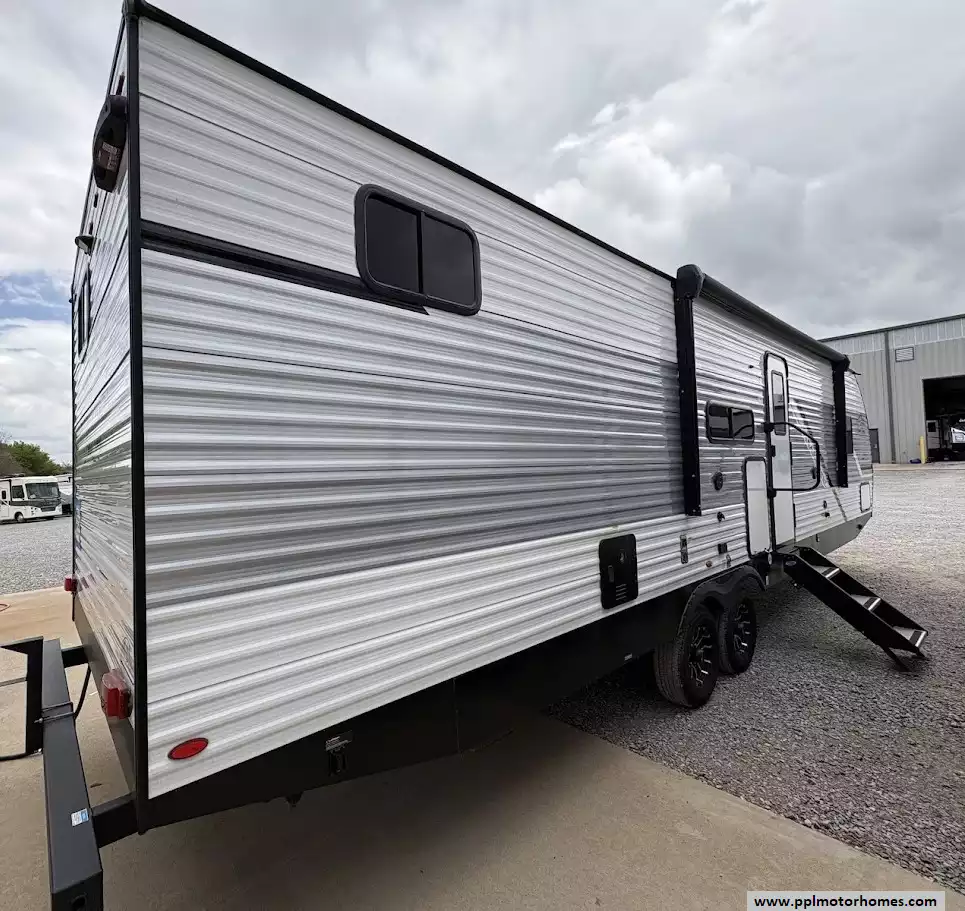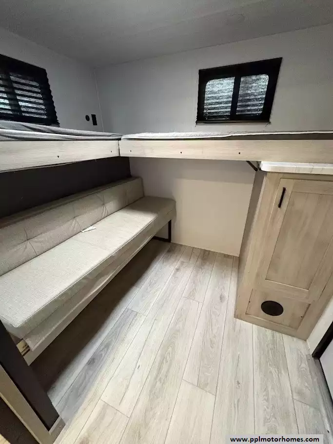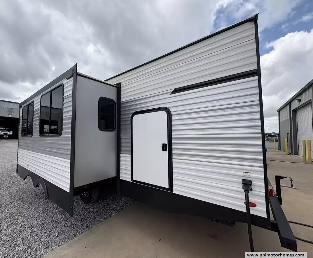 The heart of this trailer is its fully equipped kitchen, featuring a double-door 12V Everchill refrigerator, a three-burner range, an oven, and a microwave. After a day of exploration, you can unwind by the warm glow of the interior fireplace and watch your favorite shows on the included TV, or move the party outside under the automatic main and window/door awnings. The exterior experience is further enhanced by high-quality outside speakers, an integrated outdoor grill, and a solar panel to keep your systems charged while off the grid. With its reputation for maximizing storage and providing a versatile bunkhouse layout, this Della Terra 291BH is a sales-ready home on wheels that is truly built for every journey.