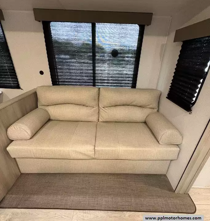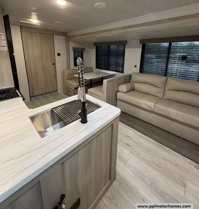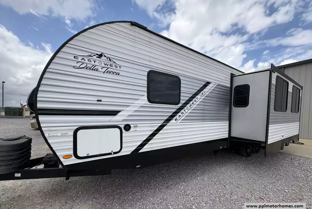 This 2024 East To West Della Terra 291BH is a premier 38-foot travel trailer designed for those who value both rugged durability and refined comfort. As a brand known for its industry-leading 81-inch interior ceiling height and "of the Earth" design philosophy, this fiberglass-bodied model delivers a remarkably airy and spacious feel. The floor plan is anchored by a large slide-out that dramatically expands the living area, while dual ducted air conditioners provide powerful, efficient climate control throughout the entire coach. Setup is effortless thanks to the electric tongue jack, allowing you more time to enjoy the thoughtful engineering and high-quality finishes that have made the Della Terra series a standout choice for family adventures.