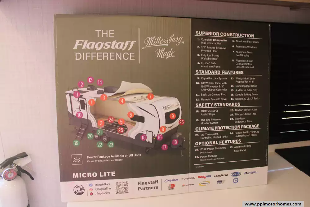This 2024 Flagstaff Micro Lite 25BRDS is a compact yet family-friendly travel trailer that balances lightweight towability with smart, comfortable living space, ideal for families or groups who want versatile sleeping arrangements and practical camping amenities. Luxuries Include...Electric Tongue Jack, 1 Slide-out, 2 Ducted Air Conditioners, Double Door 110v/12v Everchill Refrigerator, Automatic Main Awning, Outside Speakers, TV, Outdoor Grill, Outdoor Kitchen, Outside Shower, Microwave, 3 Burner Range, and Oven.