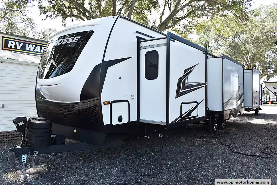 This 2024 Primetime Lacrosse Ls LUXURY LT 3500 has an Electric Tongue Jack, 4 Slide-outs, 2 Ducted Air Conditioners, 12v Everchill Refrigerator, Automatic Main Awning And Window Awning, Outside Speakers, TV, Outside Shower, Fireplace, Microwave, 3 Burner Range, Oven