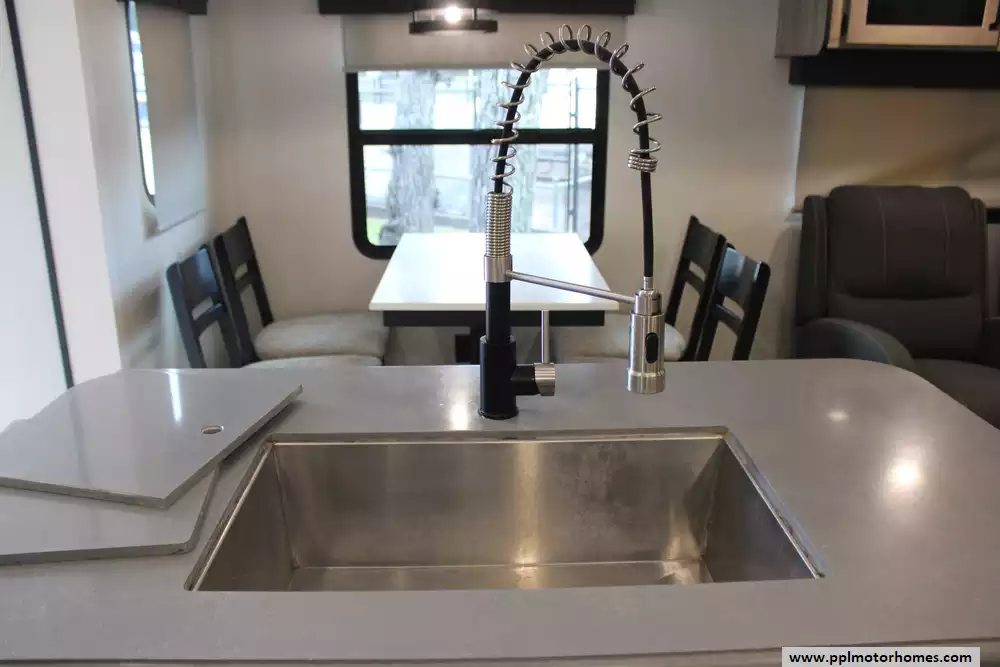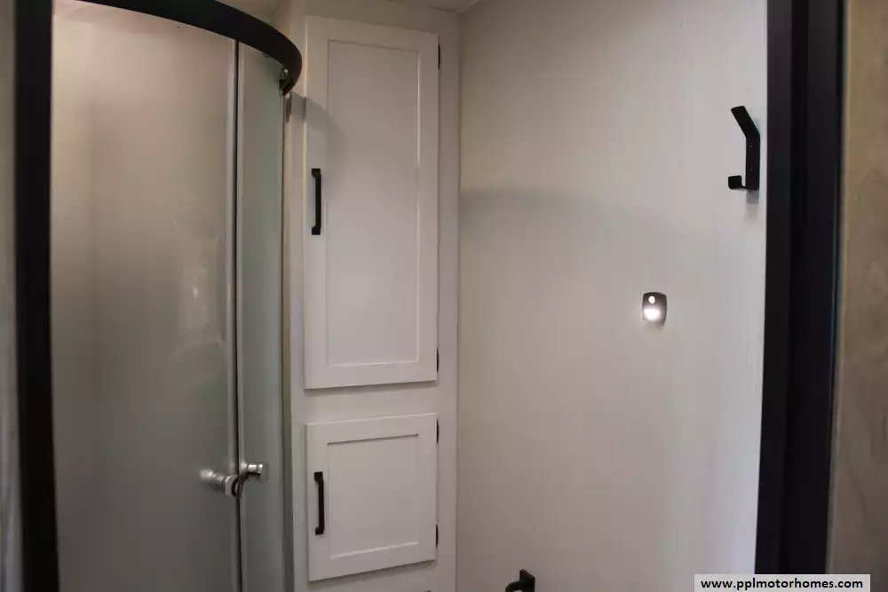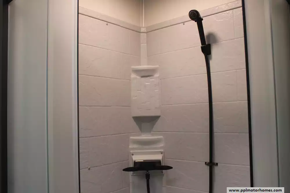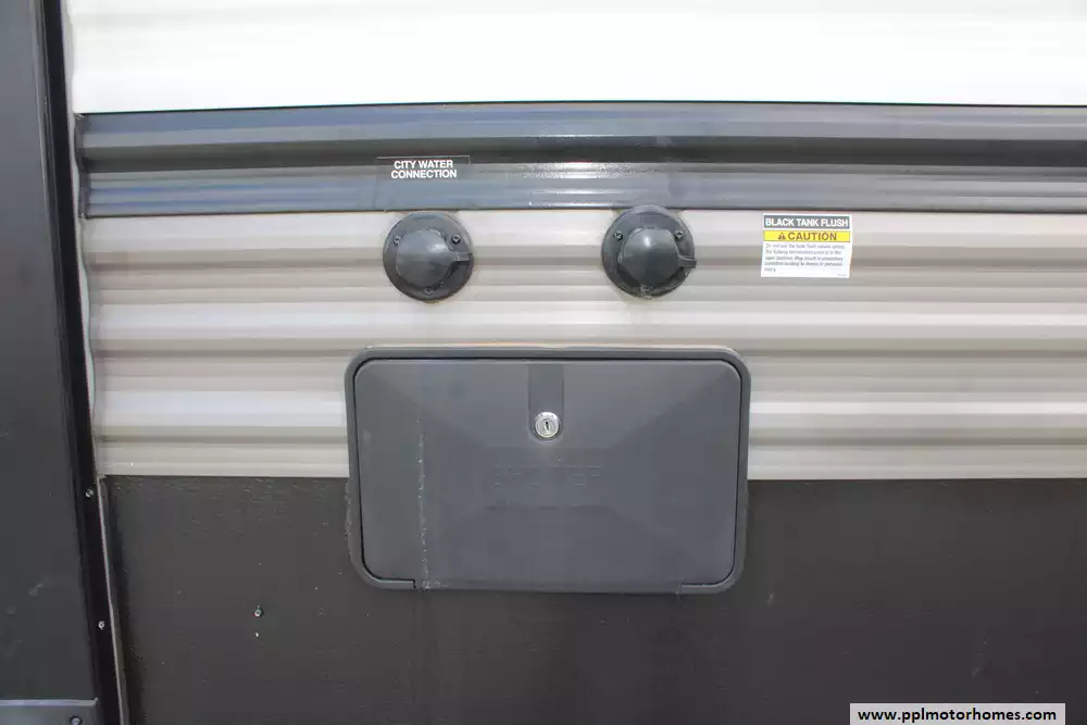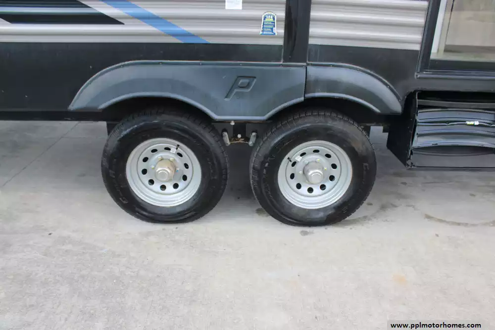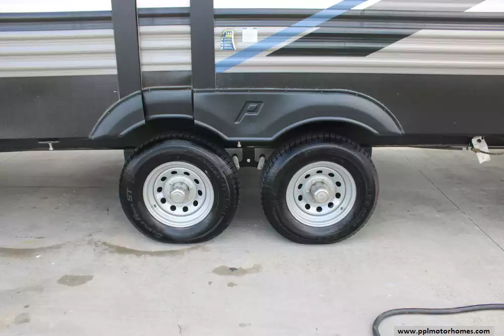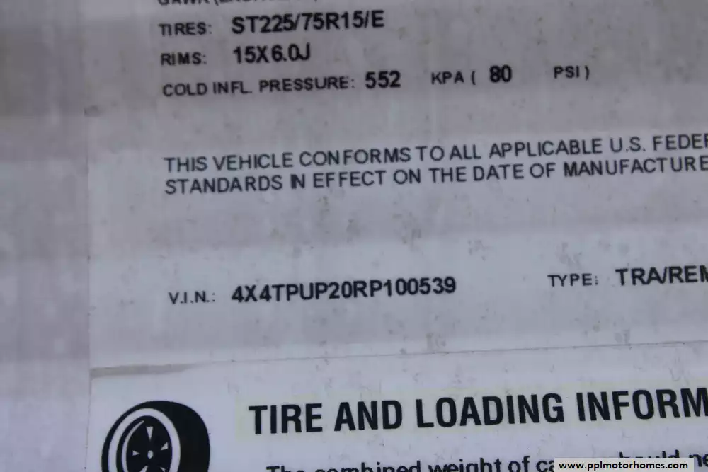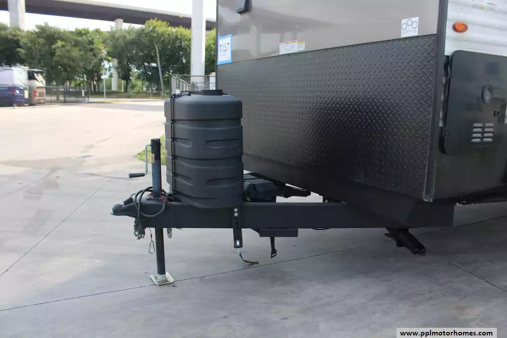 Specs: Length: 41.83 ft., Width: 8 ft., Height: 11.75 ft., Interior Height: 7 ft. Payload Capacity: 1,445 lbs., Total Fresh Water Tank Capacity: 43 gal., Total Gray Water Tank Capacity: 70 gal., Total Black Water Tank Capacity: 35 gal., Number of Propane Tanks: 2, Total Propane Tank Capacity: 40 lbs.