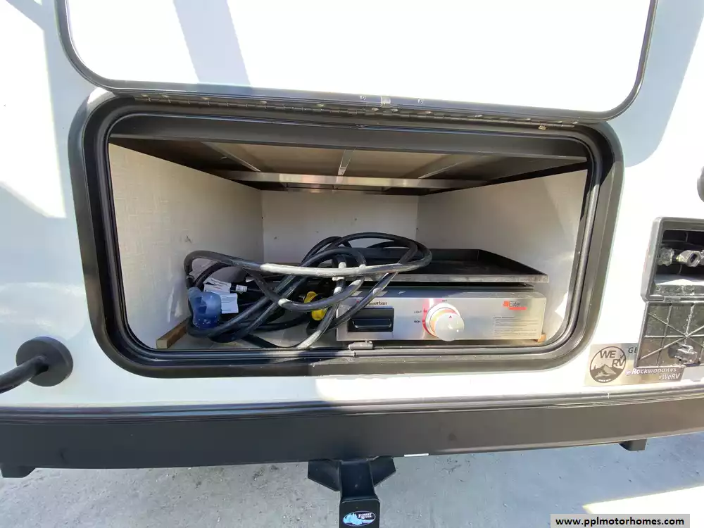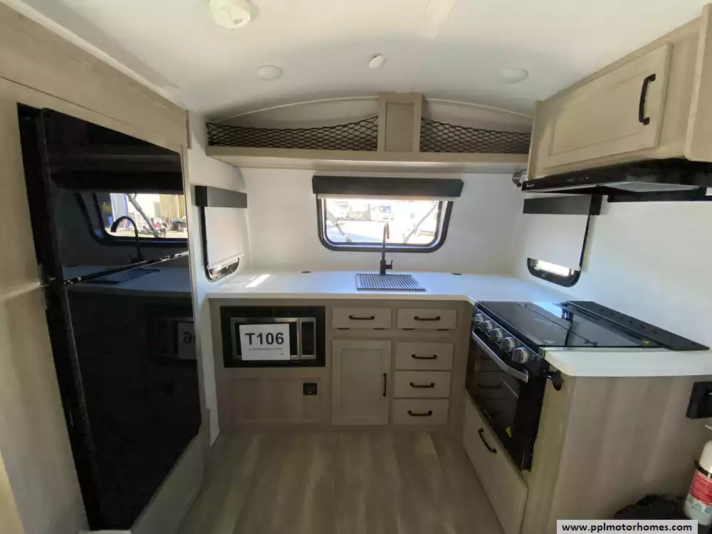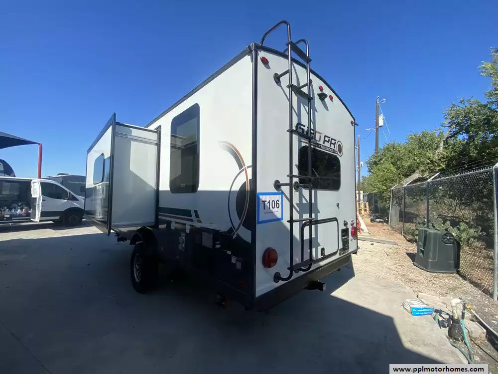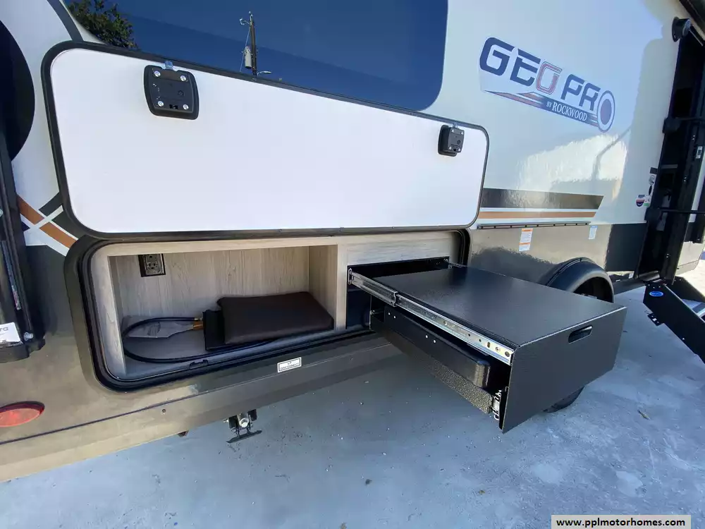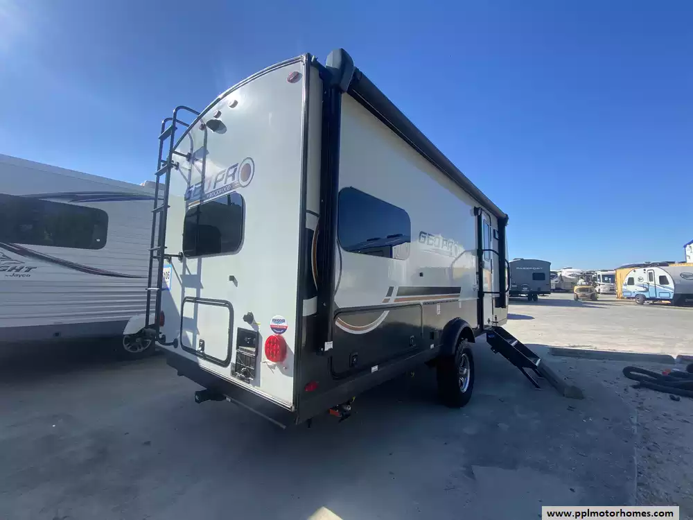 This 2024 Rockwood Geo Pro 20FKS has an Electric Tongue Jack, 1 Slide-out, 1 Ducted Air Conditioner, Double Door 12v Magic Chef Refrigerator, Automatic Main Awning, Solar Panel, Outside Speakers, TV, Outside Shower, Microwave, 3 Burner Range