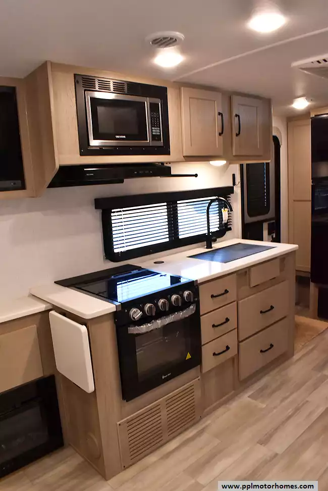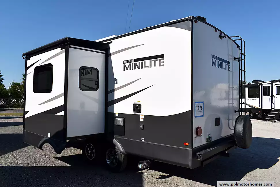 This 2024 Rockwood Mini Lite 2205S has an Electric Tongue Jack, 1 Slide-out, 1 Ducted Air Conditioner, Double Door 12v Magic Chef Refrigerator, Automatic Main Awning And Slide Awning, Solar Panel, Satellite Receiver, Outside Speakers, TV, Outdoor Grill, Outside Shower, Fireplace, Microwave, 3 Burner Range, Oven