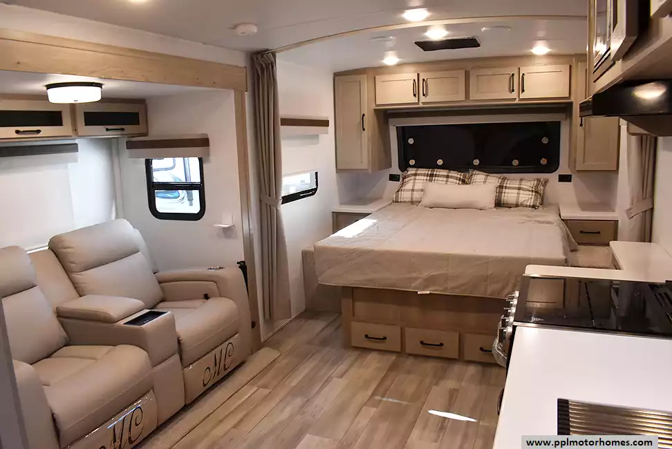 (Floor plan is NOT drawn to scale. Length of vehicle is approximate. Buyer is responsible for verifying actual length. PPL Motor Homes compiled this list of features, specifications, equipment and options as a guide. No representation or warranties, either express or implied, are made as to the accuracy of the information herein. Please verify for yourself all items listed before purchase.)