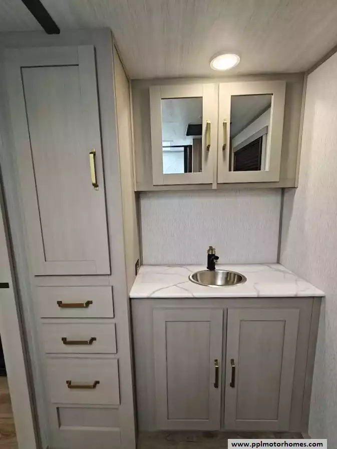 (Floor plan is NOT drawn to scale. Length of vehicle is approximate. Buyer is responsible for verifying actual length. PPL Motor Homes compiled this list of features, specifications, equipment and options as a guide. No representation or warranties, either express or implied, are made as to the accuracy of the information herein. Please verify for yourself all items listed before purchase.)