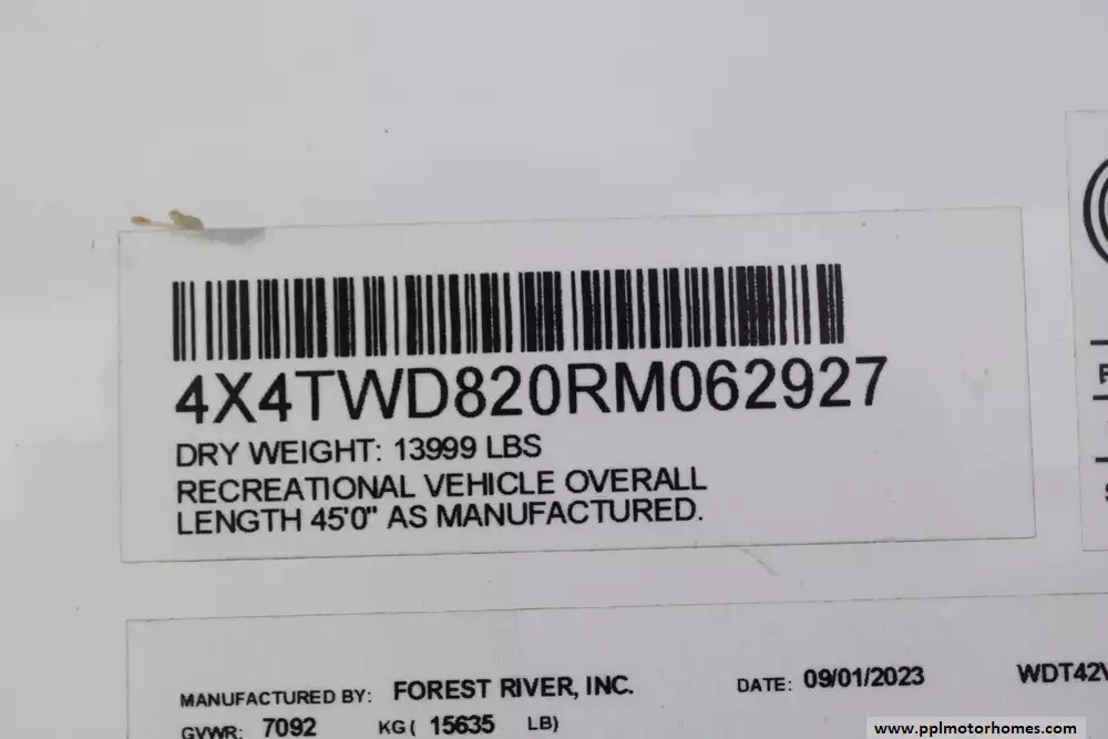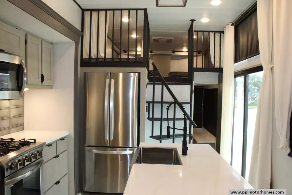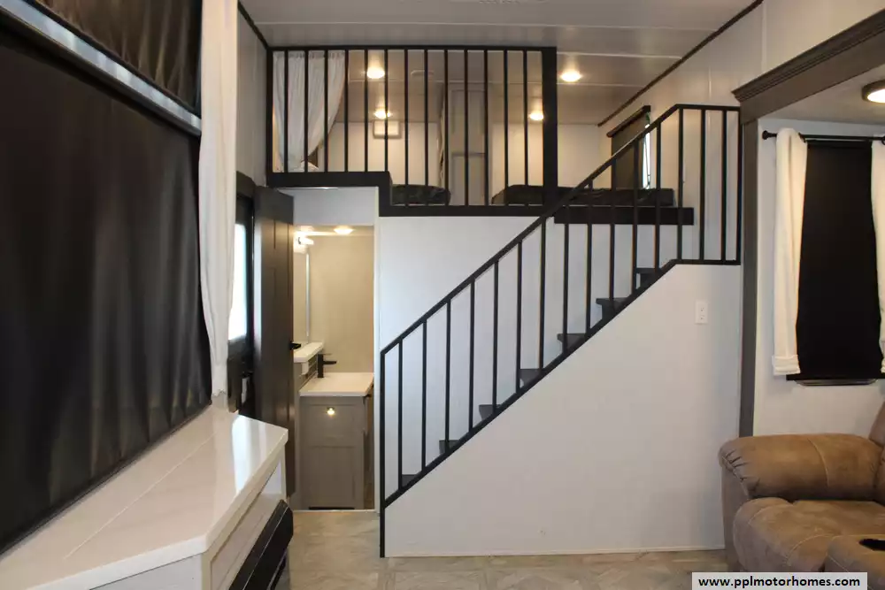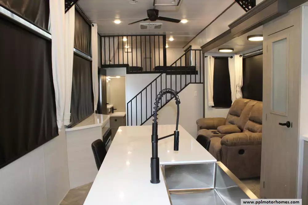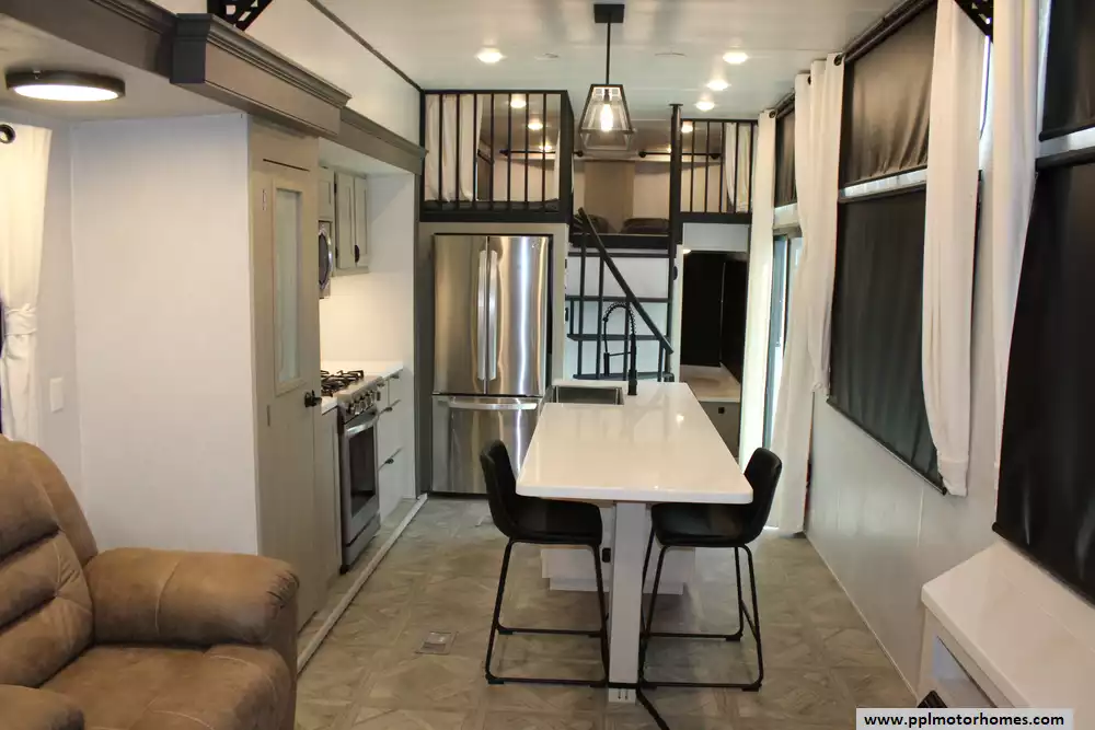 Specs: Length: 45 ft., Width: 8.5 ft., Height: 13.3 ft., Interior Height: 8.10 ft., Payload Capacity: 2,491 lbs., Total Fresh Water Tank Capacity: 40 gal., Total Gray Water Tank Capacity: 40 gal., Total Black Water Tank Capacity: 40 gal., Number of Propane Tanks: 2, Total Propane Tank Capacity: 20 lbs.
