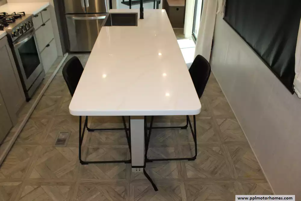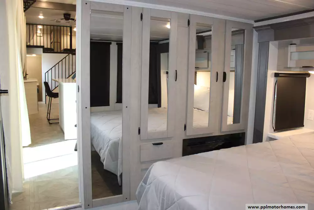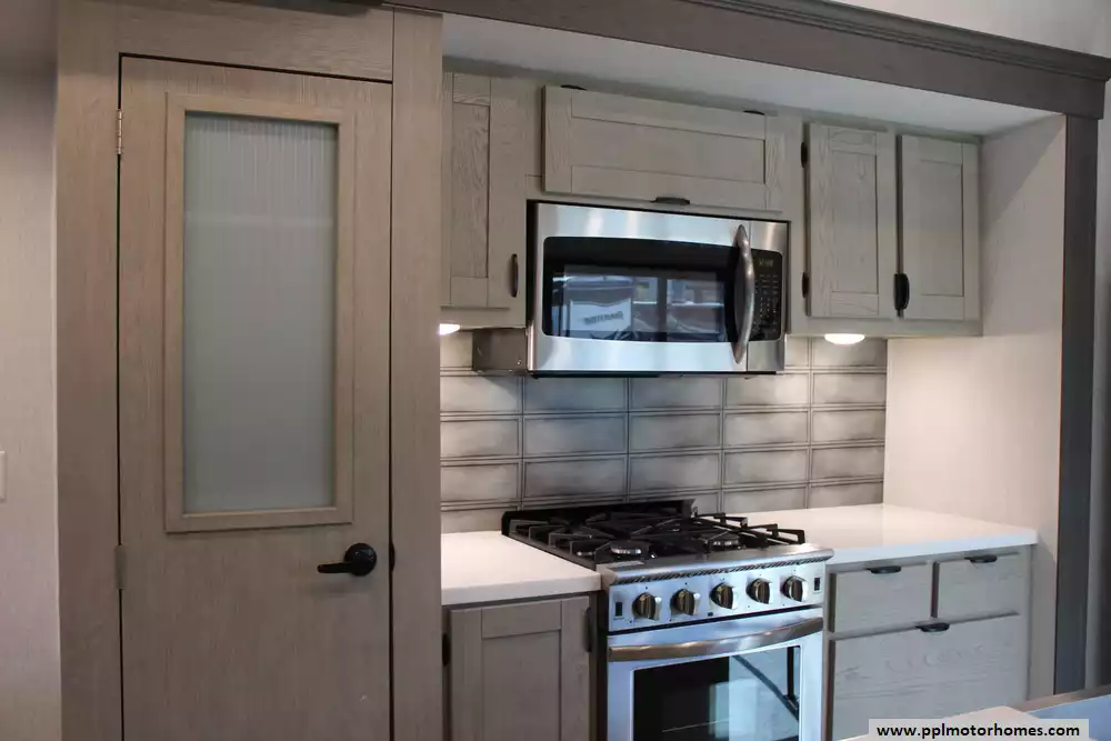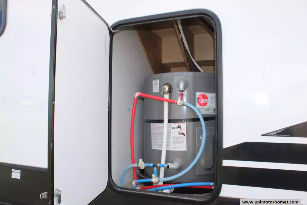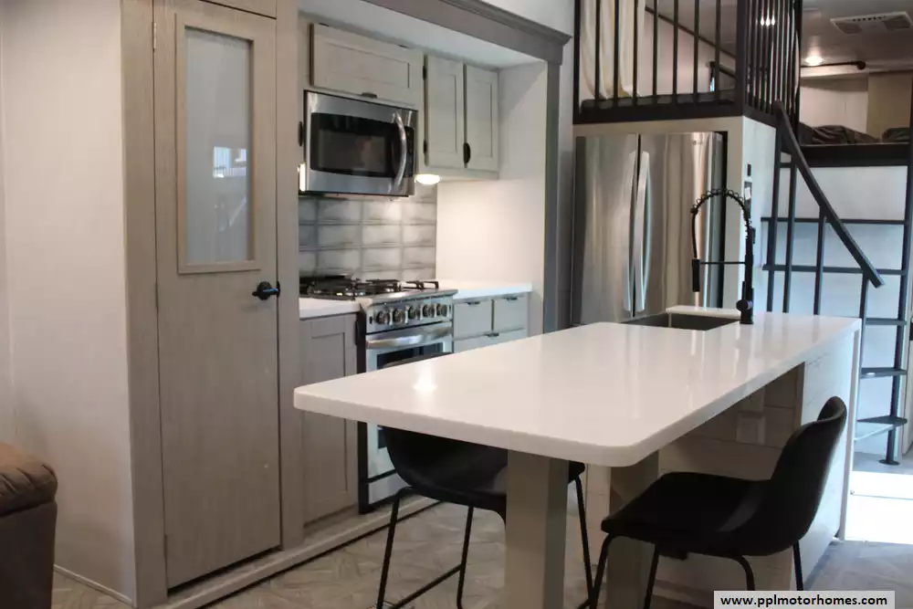 Specs: Length: 45 ft., Width: 8.5 ft., Height: 13.3 ft., Interior Height: 8.10 ft., Payload Capacity: 2,491 lbs., Total Fresh Water Tank Capacity: 40 gal., Total Gray Water Tank Capacity: 40 gal., Total Black Water Tank Capacity: 40 gal., Number of Propane Tanks: 2, Total Propane Tank Capacity: 20 lbs.