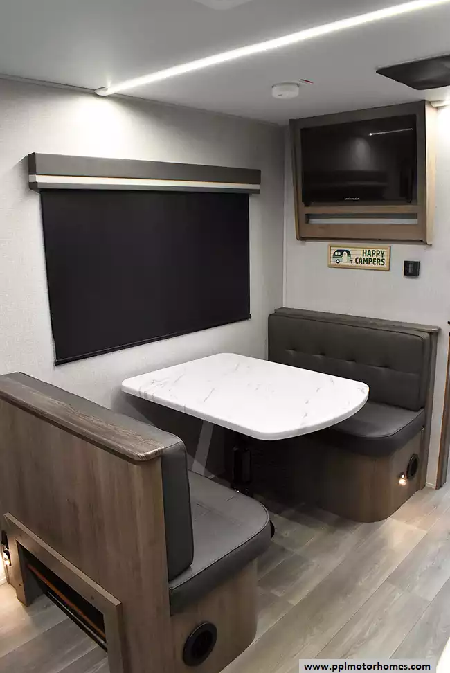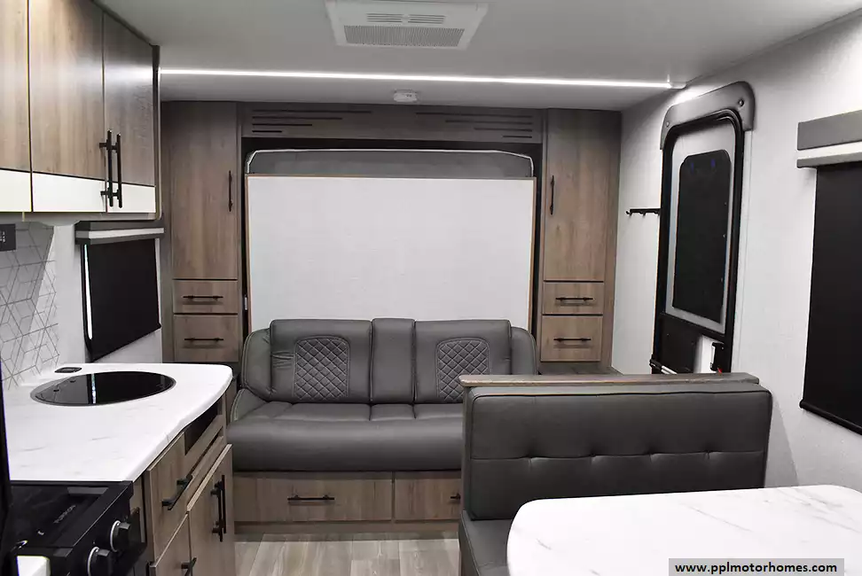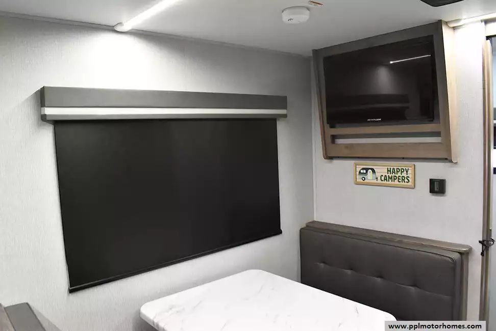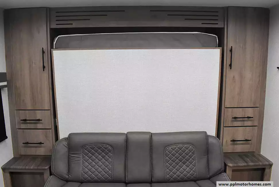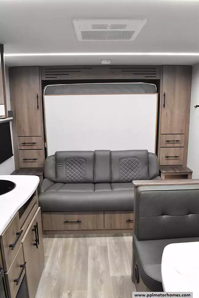 This unit comes with 2 solar panels, murphy bed, booth dining table, shower, outside griddle, leveler pads, large battery box, Litime 12V 230Ah Plus deep cycle LifePO4 battery, 400 Watt Solar ( 2 - 200 Watt Panels ), WFCO 2000 Watt Pure Sine Wave inverter, Dometic Ceramic 310 Toilet, Tire Linc tire pressure & temp. monitoring system, Maxxfan, outside cover and inside blackout cover, Lippert screen door assist, and Furrion Vision S Rv backup camera, system, and skylight insulation pillow.