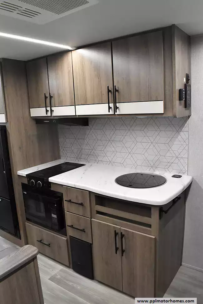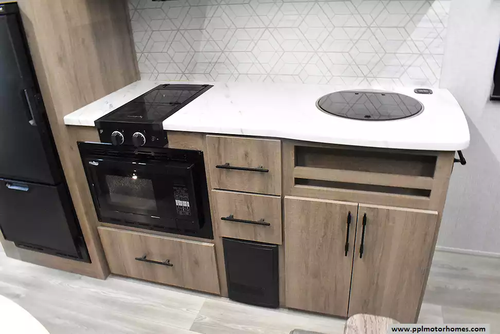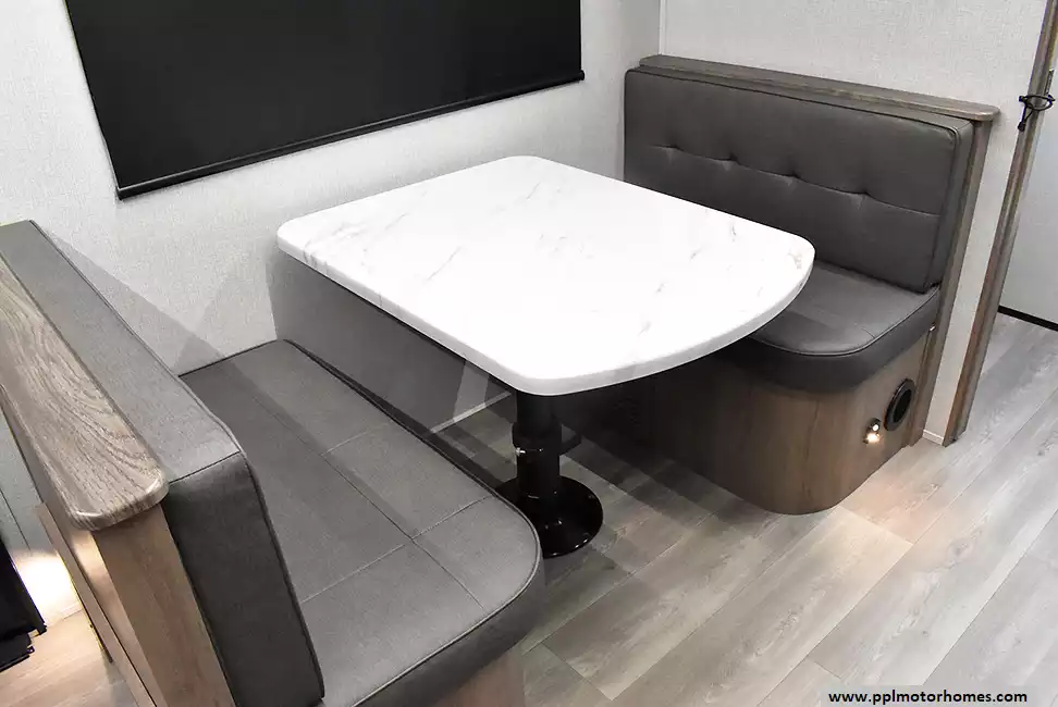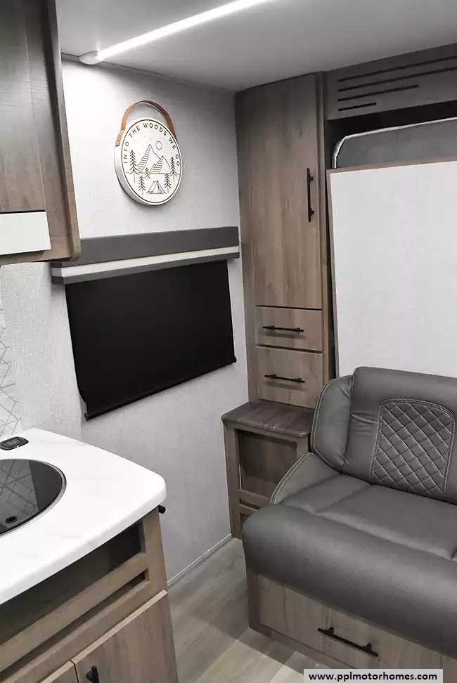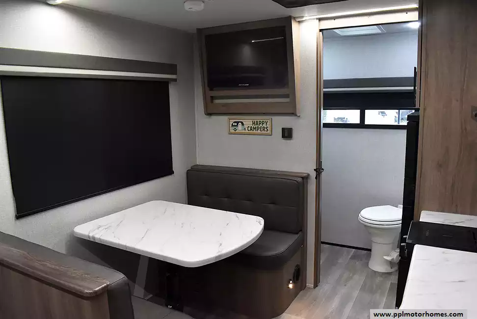 This unit comes with 2 solar panels, murphy bed, booth dining table, shower, outside griddle, leveler pads, large battery box, Litime 12V 230Ah Plus deep cycle LifePO4 battery, 400 Watt Solar ( 2 - 200 Watt Panels ), WFCO 2000 Watt Pure Sine Wave inverter, Dometic Ceramic 310 Toilet, Tire Linc tire pressure & temp. monitoring system, Maxxfan, outside cover and inside blackout cover, Lippert screen door assist, and Furrion Vision S Rv backup camera, system, and skylight insulation pillow.