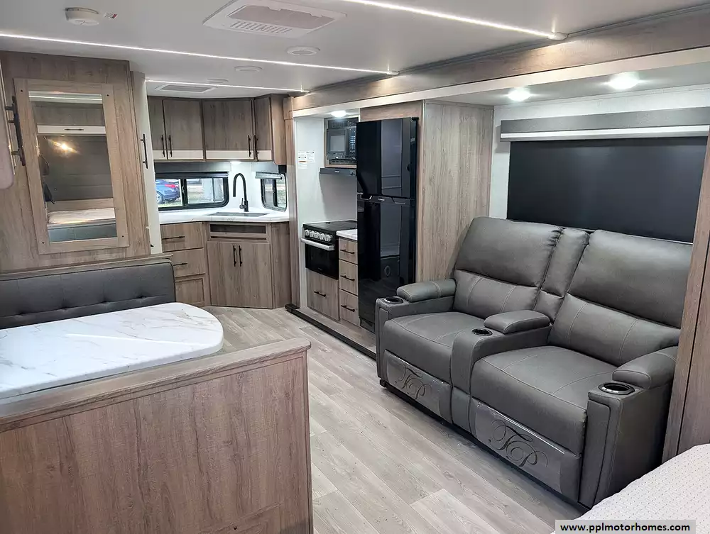 (Floor plan is NOT drawn to scale. Length of vehicle is approximate. Buyer is responsible for verifying actual length. PPL Motor Homes compiled this list of features, specifications, equipment and options as a guide. No representation or warranties, either express or implied, are made as to the accuracy of the information herein. Please verify for yourself all items listed before purchase.)