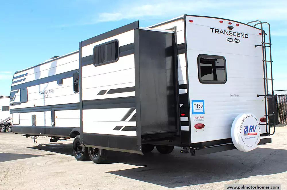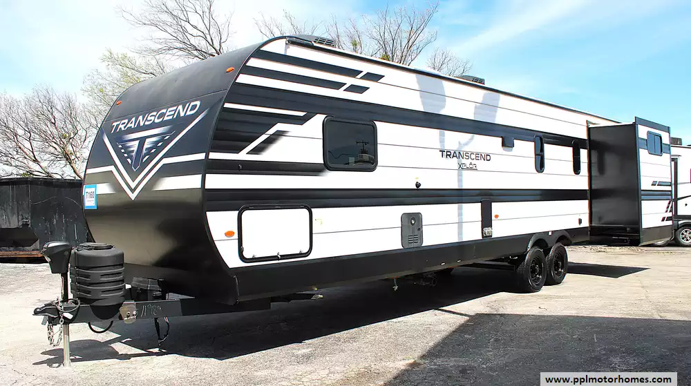 Built for adventure, this travel trailer offers abundant storage, a roomy bathroom, and convenient outdoor features that make camping easier and more enjoyable. Whether you're relaxing under the awning, gathering around the table after a day of exploring, or enjoying the comfort of the climate-controlled interior, the Transcend 315BH is ready for the journey ahead. To tow this spacious bunkhouse travel trailer, a _-ton pickup truck or larger is recommended for safe and confident towing.