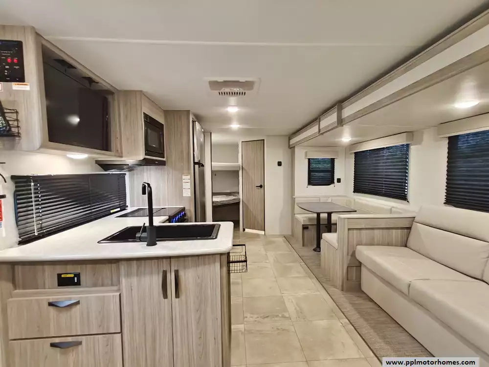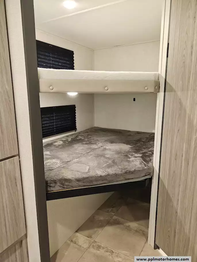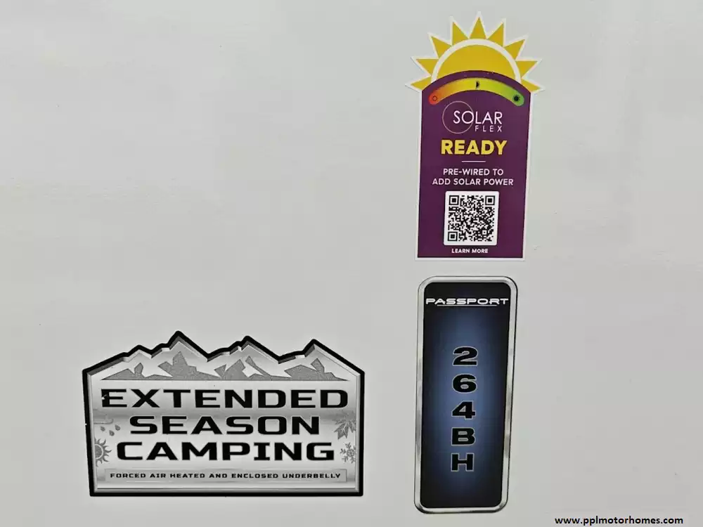 Experience the ultimate blend of lightweight towing and spacious family living with the 2024 Keystone Passport 264BH. Built with a durable fiberglass body and a rugged TPO roof, this 30.4 foot travel trailer is designed for families who want premium features without the heavy-duty truck requirement. A standout in its class, the Passport is renowned for its water-resistant flooring and aluminum-framed construction, ensuring long-lasting quality for years of road trips. This model features a large slide-out that opens up a comfortable living area, making the double-size bunks and master suite feel even more inviting. Whether you are chasing the summer heat or enjoying a crisp autumn morning, the dual climate control system featuring both a ducted and a non-ducted air conditioner and the heated tanks keep you comfortable in any season.