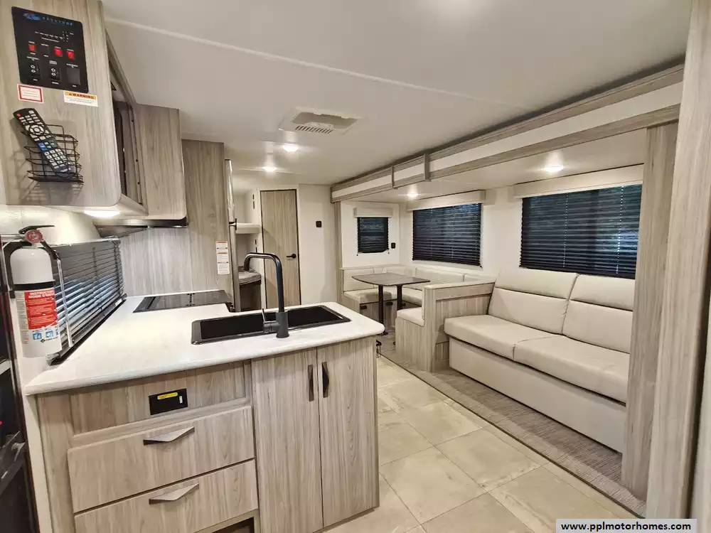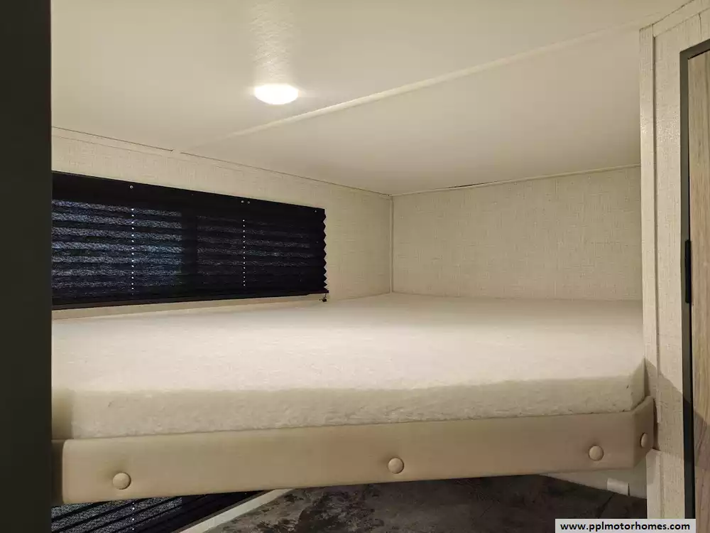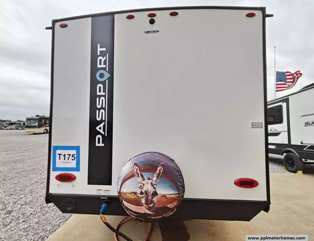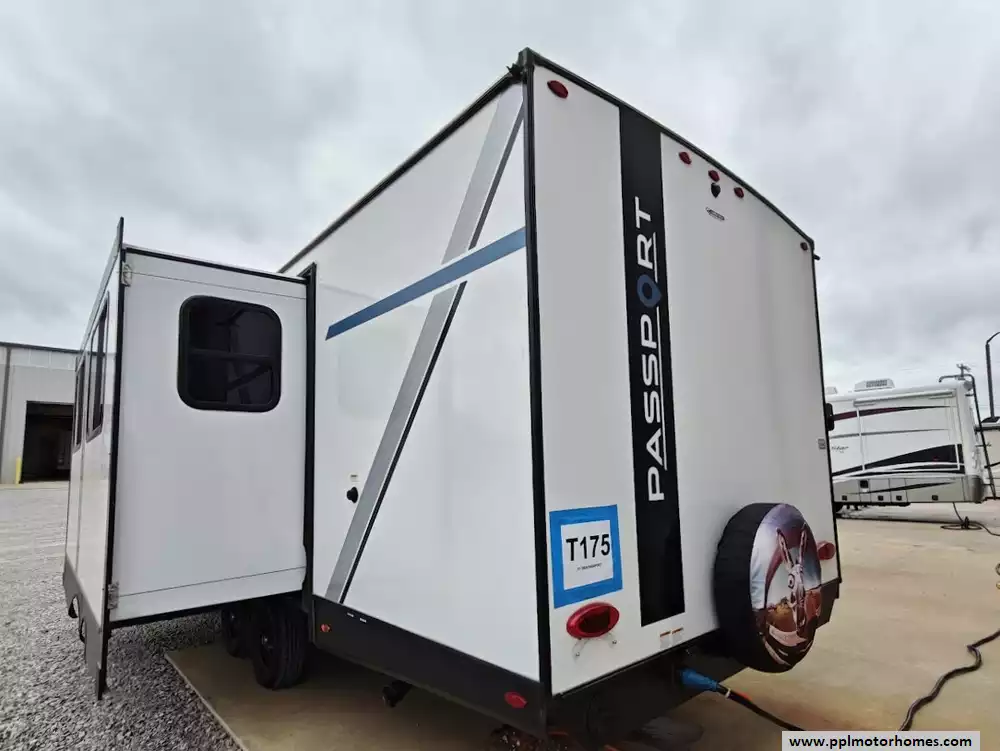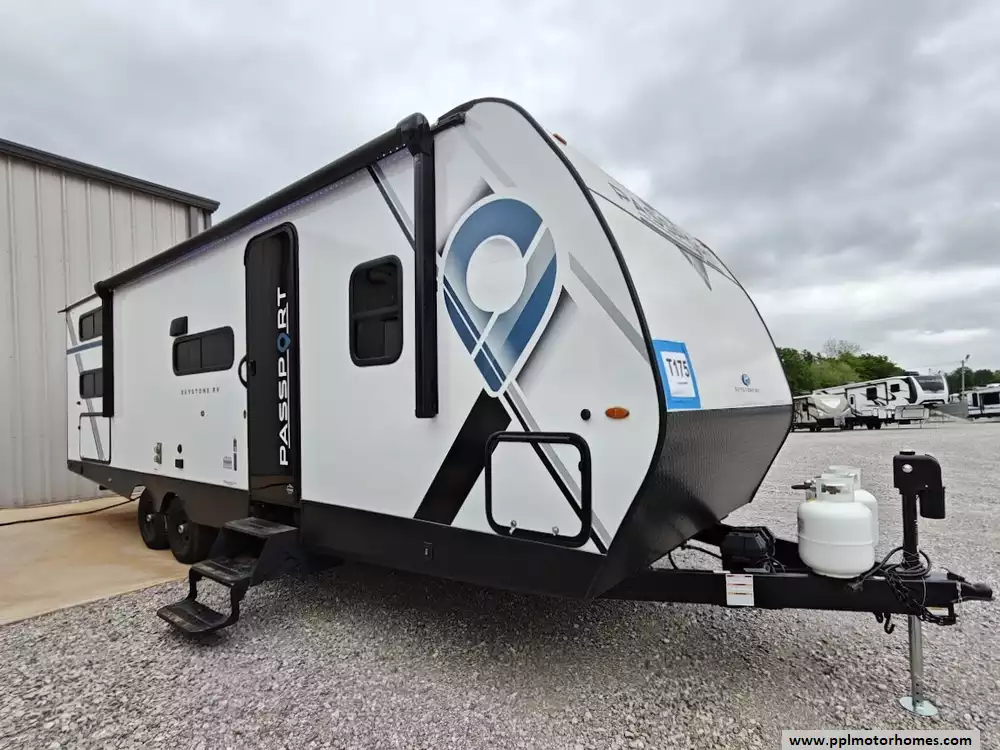 The interior of the 264BH is thoughtfully designed to provide all the comforts of home, anchored by a full kitchen with a 12v Everchill double-door refrigerator, a three-burner range with an oven, and a microwave. Setting up camp is effortless thanks to the electric tongue jack and the automatic main awning, which creates an instant outdoor living space complete with outside speakers and a convenient outside shower. Entertainment is ready to go with an included TV for relaxing nights after a day of exploration. With its reputation for reliability and its smart, space-saving layout, this 2024 Passport is the ideal choice for those ready to hit the road in comfort and style.