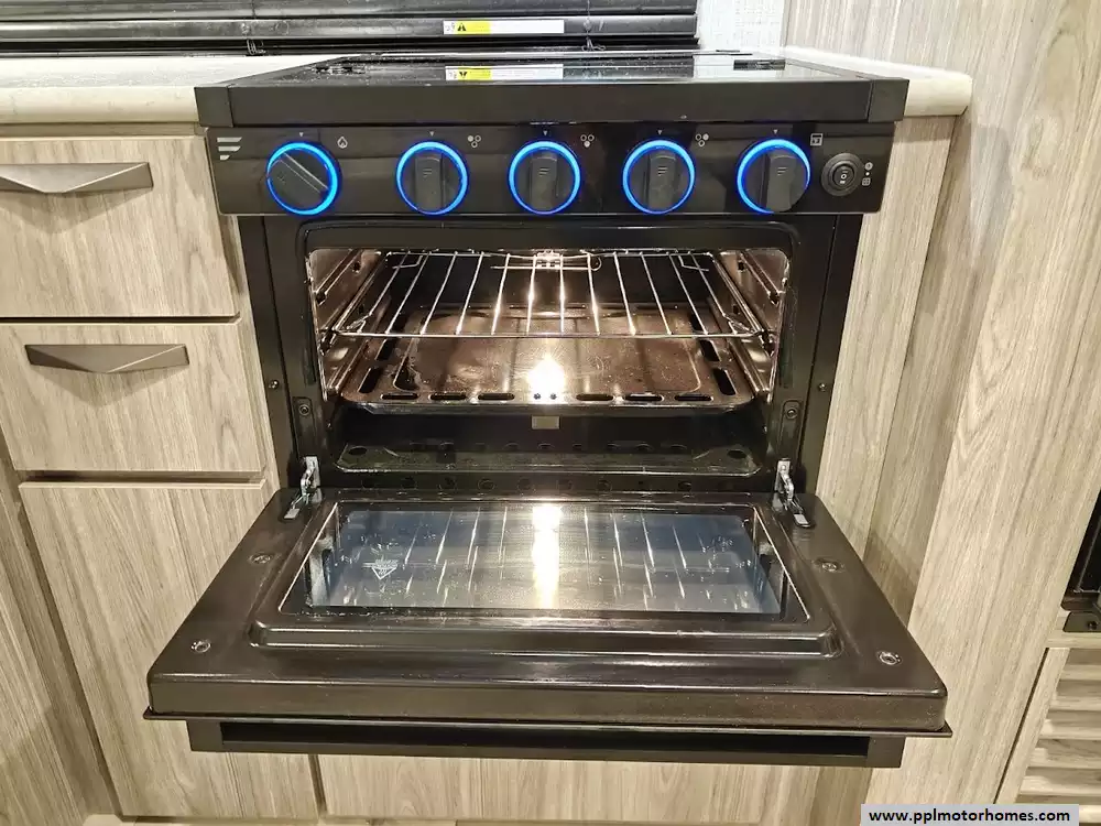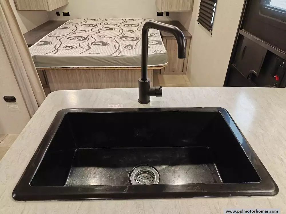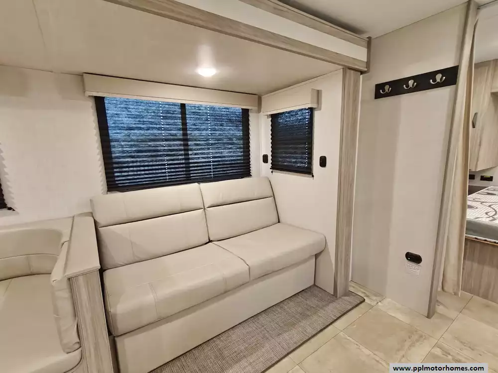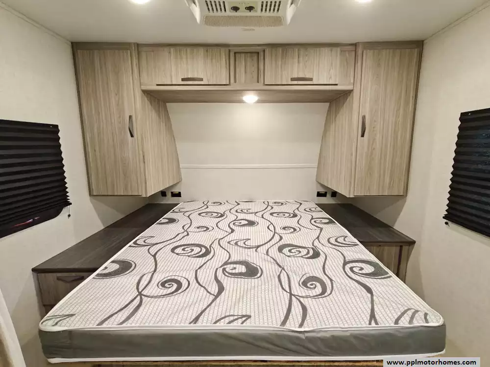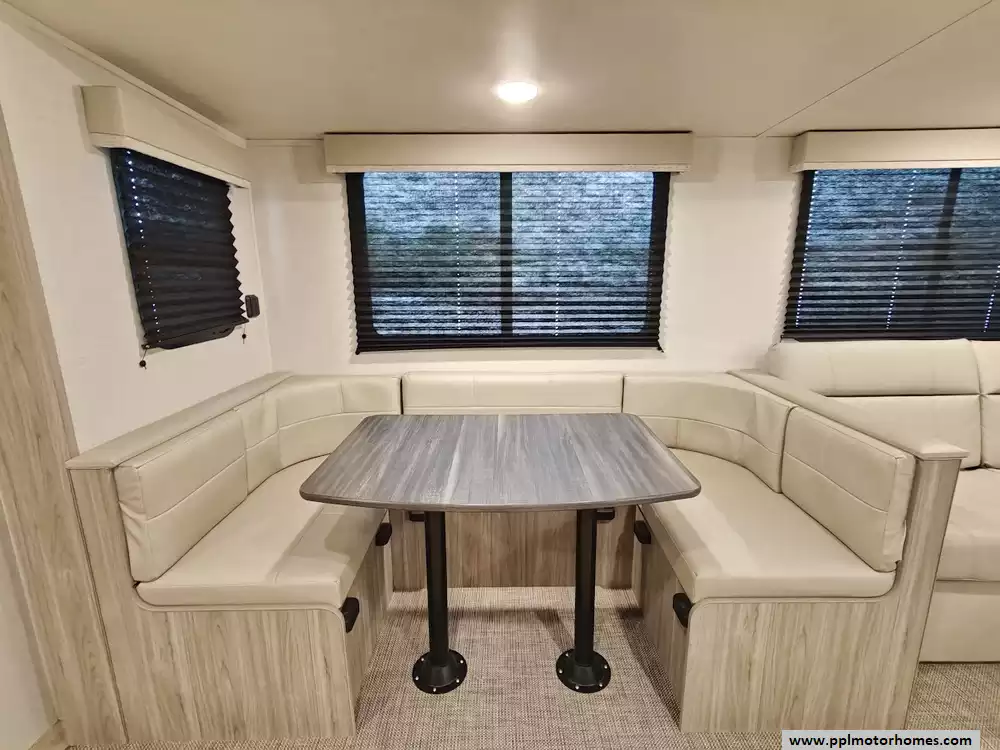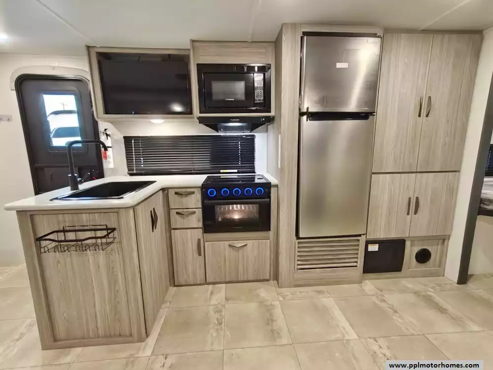 The interior of the 264BH is thoughtfully designed to provide all the comforts of home, anchored by a full kitchen with a 12v Everchill double-door refrigerator, a three-burner range with an oven, and a microwave. Setting up camp is effortless thanks to the electric tongue jack and the automatic main awning, which creates an instant outdoor living space complete with outside speakers and a convenient outside shower. Entertainment is ready to go with an included TV for relaxing nights after a day of exploration. With its reputation for reliability and its smart, space-saving layout, this 2024 Passport is the ideal choice for those ready to hit the road in comfort and style.