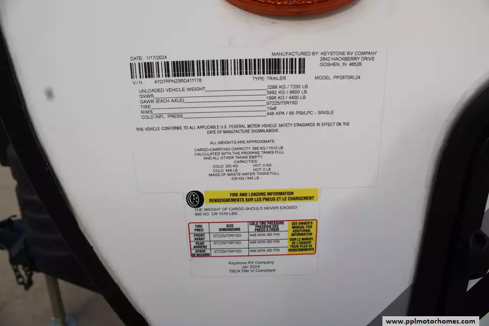 The 2024 Keystone Passport GT Ultra Lite 2870RL is a premium rear-living travel trailer built for style, comfort, and lighter towing. It features a dual-slide layout with a roomy rear living area that includes a tri-fold sofa, theater seats, entertainment center with fireplace, and plenty of natural light, balanced by a front private bedroom with a queen bed and generous storage. With an overall length of about 33 ft, two power awnings, 50-amp service, a Girard tankless water heater, 10 cu. ft. 12V refrigerator, dual 20-lb LP tanks, and a strong furnace (30,000 BTU) plus a 15,000 BTU A/C, it's designed for a variety of climates. Essential utility capacities include roughly 43-54 gallons fresh water, 76 gallons gray water, and 38 gallons black water, all built on a lightweight, durable frame with modern features like laminated exterior, vaulted ceiling, and upgraded interior finishes. Honorable mentions include 4-point power jacks, rear camera prep, and an enclosed underbelly with forced heated air. Enjoy your next adventures in this 2024 Passport GT Ultra Lite.