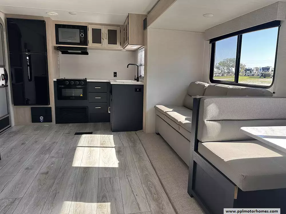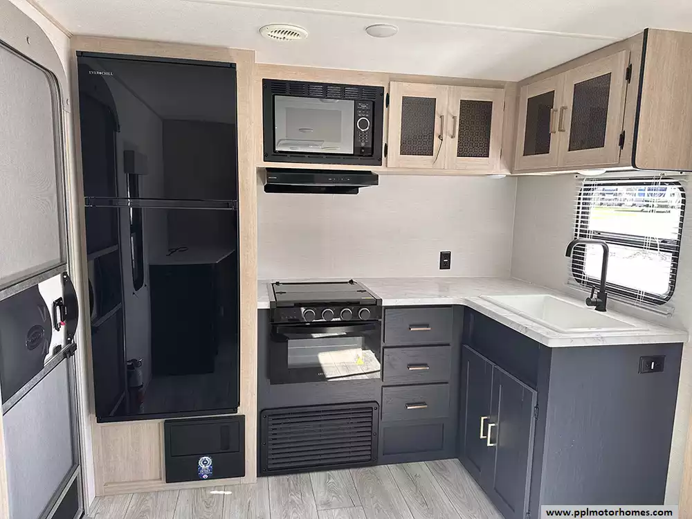 This model is a favorite for those who value a functional workspace, featuring a popular rear-kitchen layout that maximizes counter space and storage. Conveniently located near the entry door for easy grocery loading, the kitchen is equipped with a high-capacity refrigerator to keep your supplies fresh for every adventure. Whether you are planning a weekend getaway or an extended journey, the Avenger LE 24RKSLE offers the premium finishes and spacious design needed to travel in total comfort.