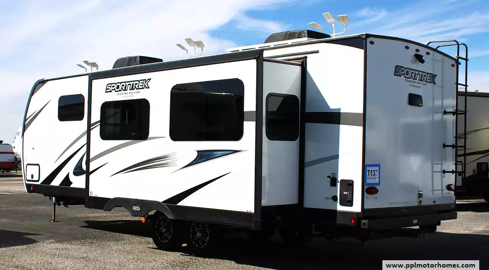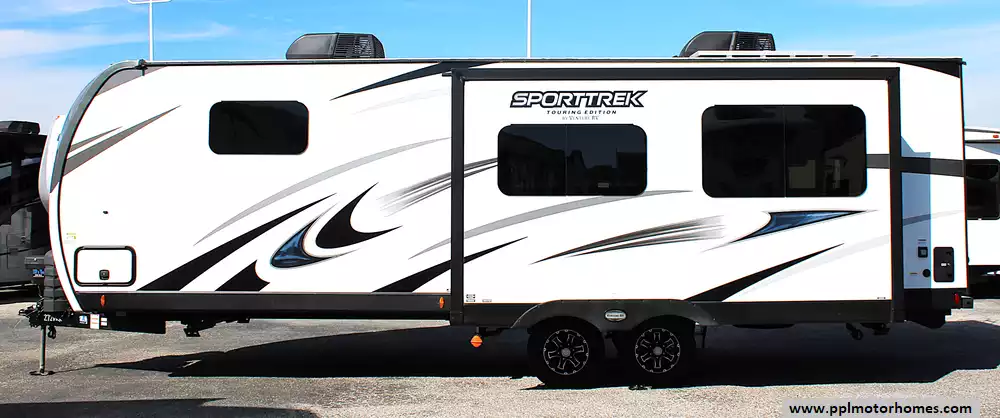 With a dry weight around 7,300 lbs, the 272VRK can be confidently towed by most _-ton trucks and properly equipped half-ton pickups. Designed for long weekends or extended stays, it blends luxury and practicality for the modern traveler. Whether parked by a lake, touring the country, or staying at a resort RV park, this SportTrek Touring Edition delivers the perfect mix of upscale design, durability, and home-like comfort.