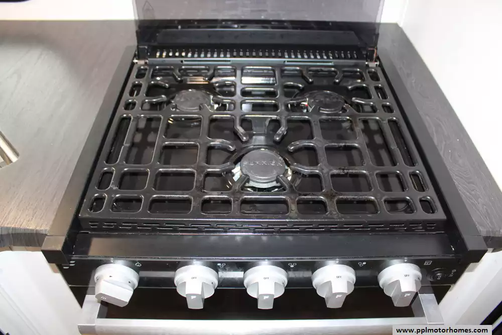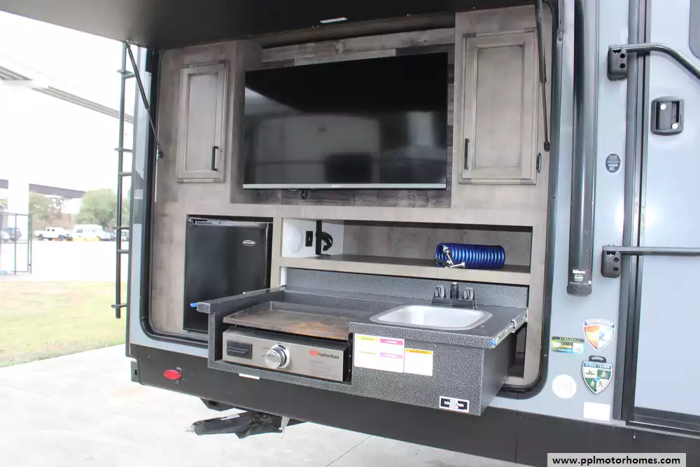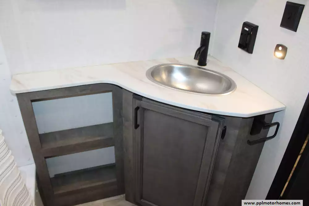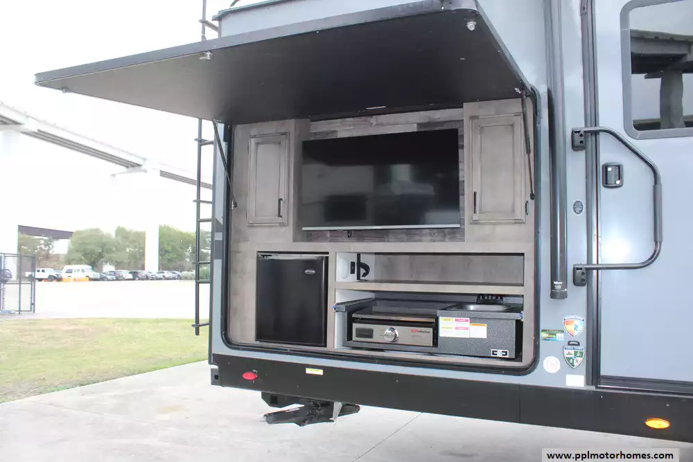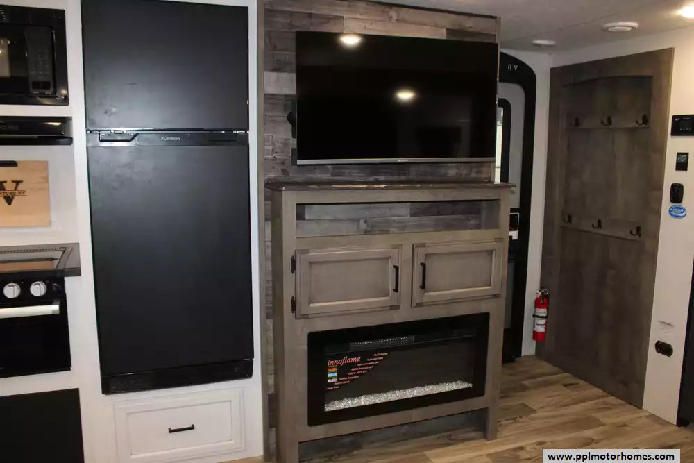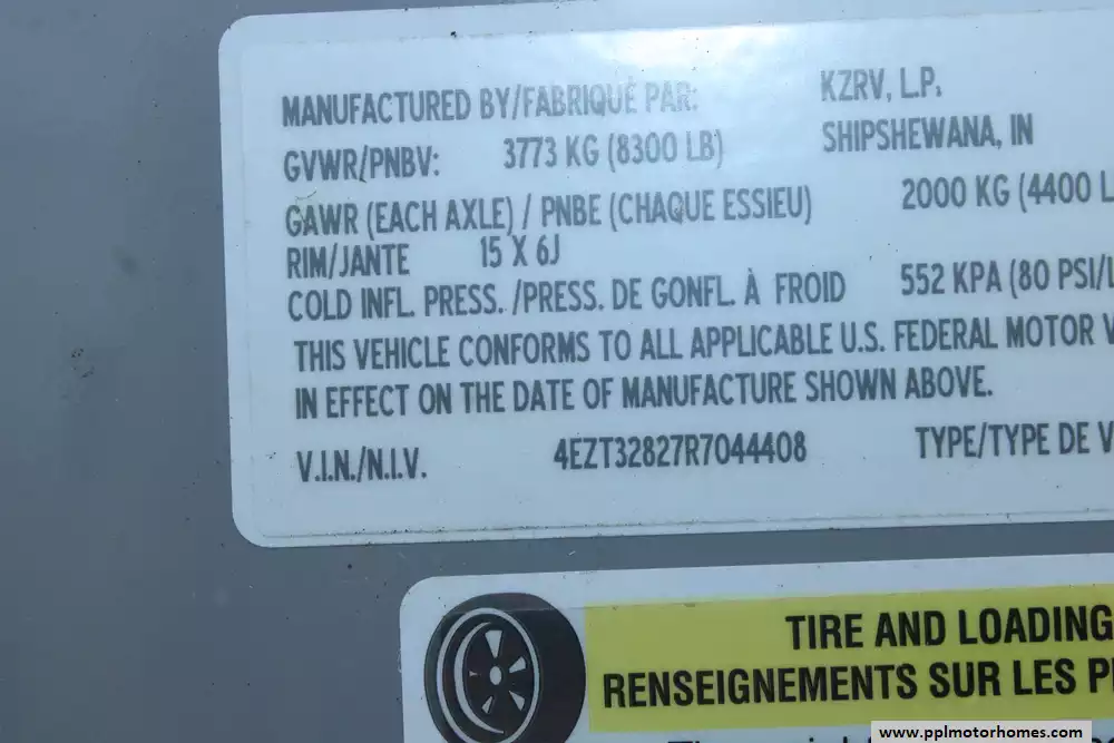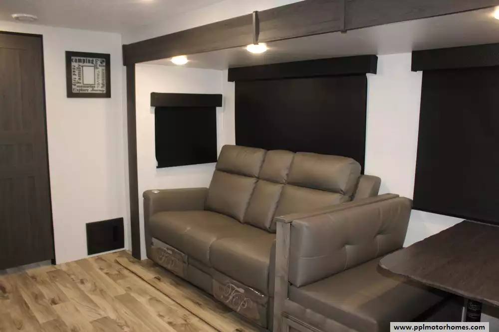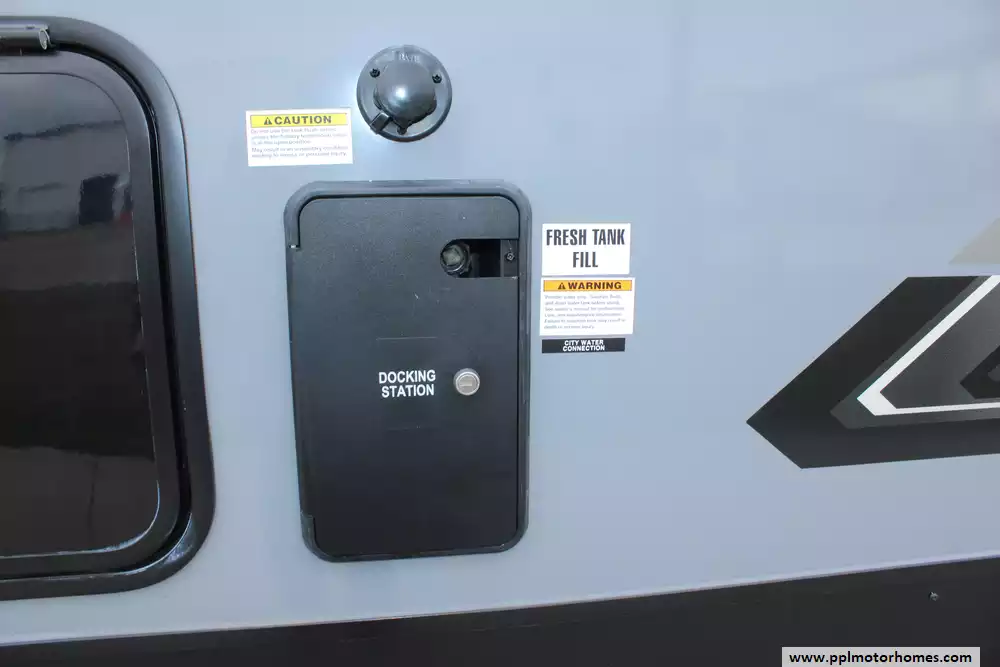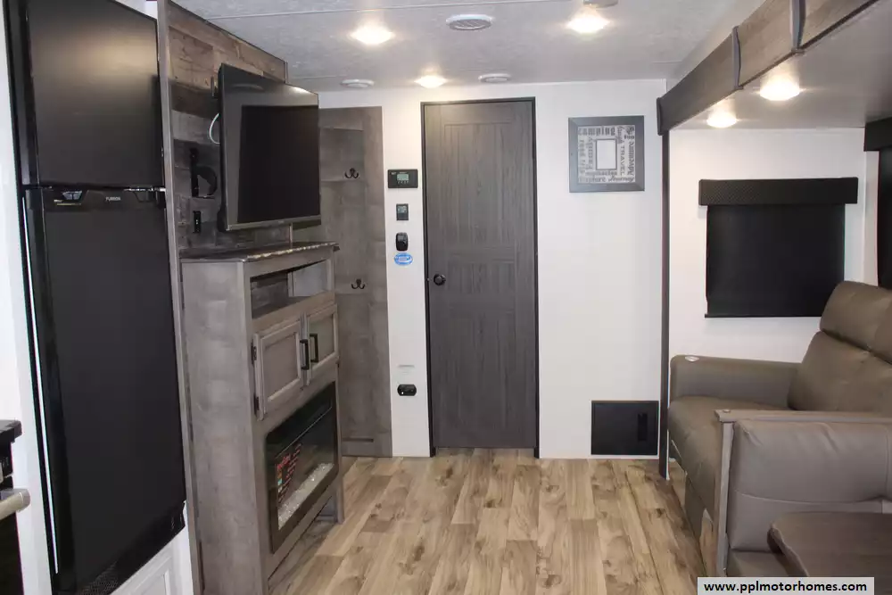 Specs: Length: 31.11 ft., Width: 8 ft., Height: 10.11 ft., Payload Capacity: 1,520 lbs., Interior Height: 6.5 ft., Total Fresh Water Tank Capacity: 45 gal., Total Gray Water Tank Capacity: 64 gal., Total Black Water Tank Capacity: 32 gal., Total Propane Tank Capacity: 60 lbs.
