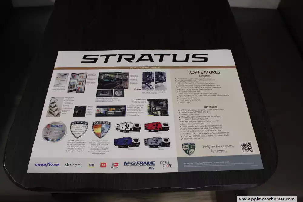 This 2024 Stratus Sport 261VRB is a well-balanced travel trailer that tends to appeal to couples or small families. It's great for weekend get-aways, seasonal camping, or long road trips. Amenities Include...Electric Tongue Jack, 1 Slide-out, 2 Ducted Air Conditioners, Double Door Furrion Refrigerator, In-Fridge Ice Maker, Automatic Main Awning, Washer/Dryer, Outside Entertainment System, 2 TVs, Outdoor Kitchen, Fireplace, Microwave, 3 Burner Range, and Oven.